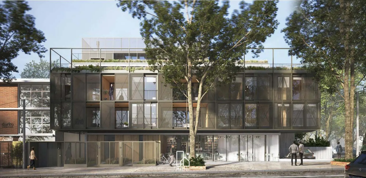 El proyecto resuelve en subsuelo el depósito del local comercial, 13 cocheras privadas, estacionamiento para bicicletas, y 3 bauleras de guardado.