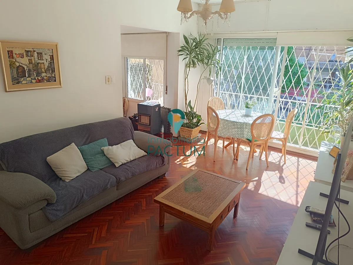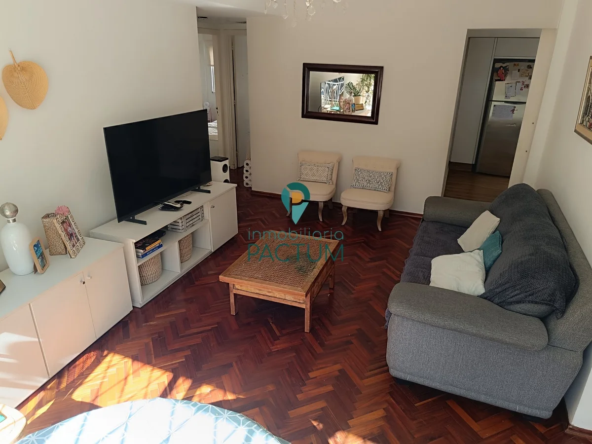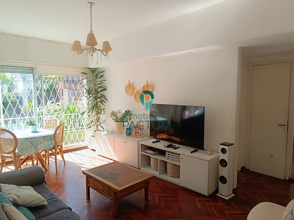 Living comedor amplio al frente con piso de parquet, aire acondicionado y acceso a balcón de 8 m².