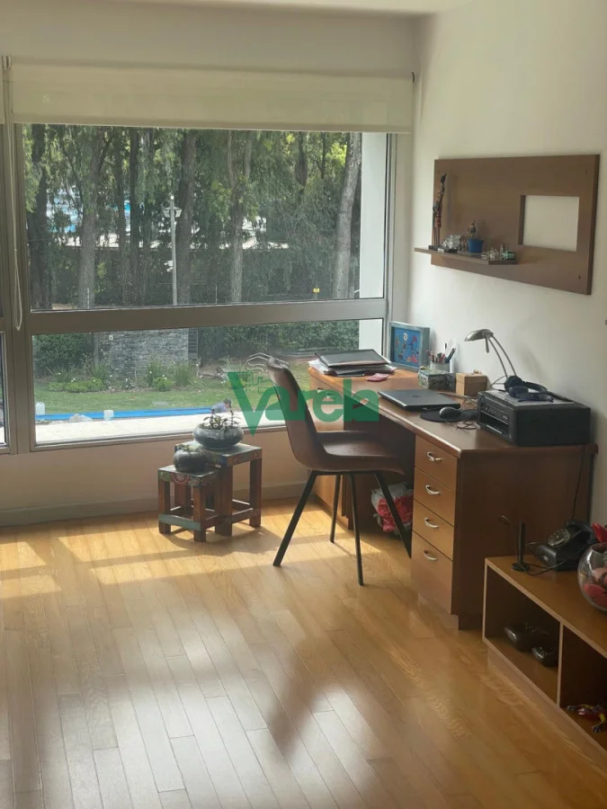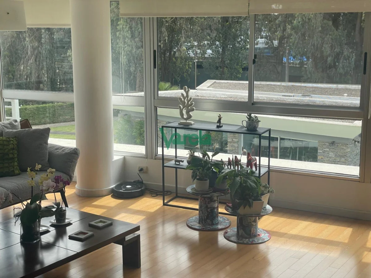 Excelente planta en un edificio moderno con todos los servicios y amenities además de seguridad 24 horas con personal propio y cámaras rodeado de enormes espacios verdes. Consta de living comedor apaisado con pisos de madera tipo ingenieril con terraza al frente orientado al norte. Tiene 2 dormitorios(1 suite)con pisos de madera flotante y placares, amplios y luminosos, cocina enorme con placares bajo y sobre mesada con amplia terraza lavadero, 2 baños completos(1 suite) uno con duchero y otro con bañera, garaje doble, gastos comunes de $ 18.000, piscina ,barbacoas, gimnasio, play-room para niños con juegos, sauna y cerramiento perimetral de todo el complejo.