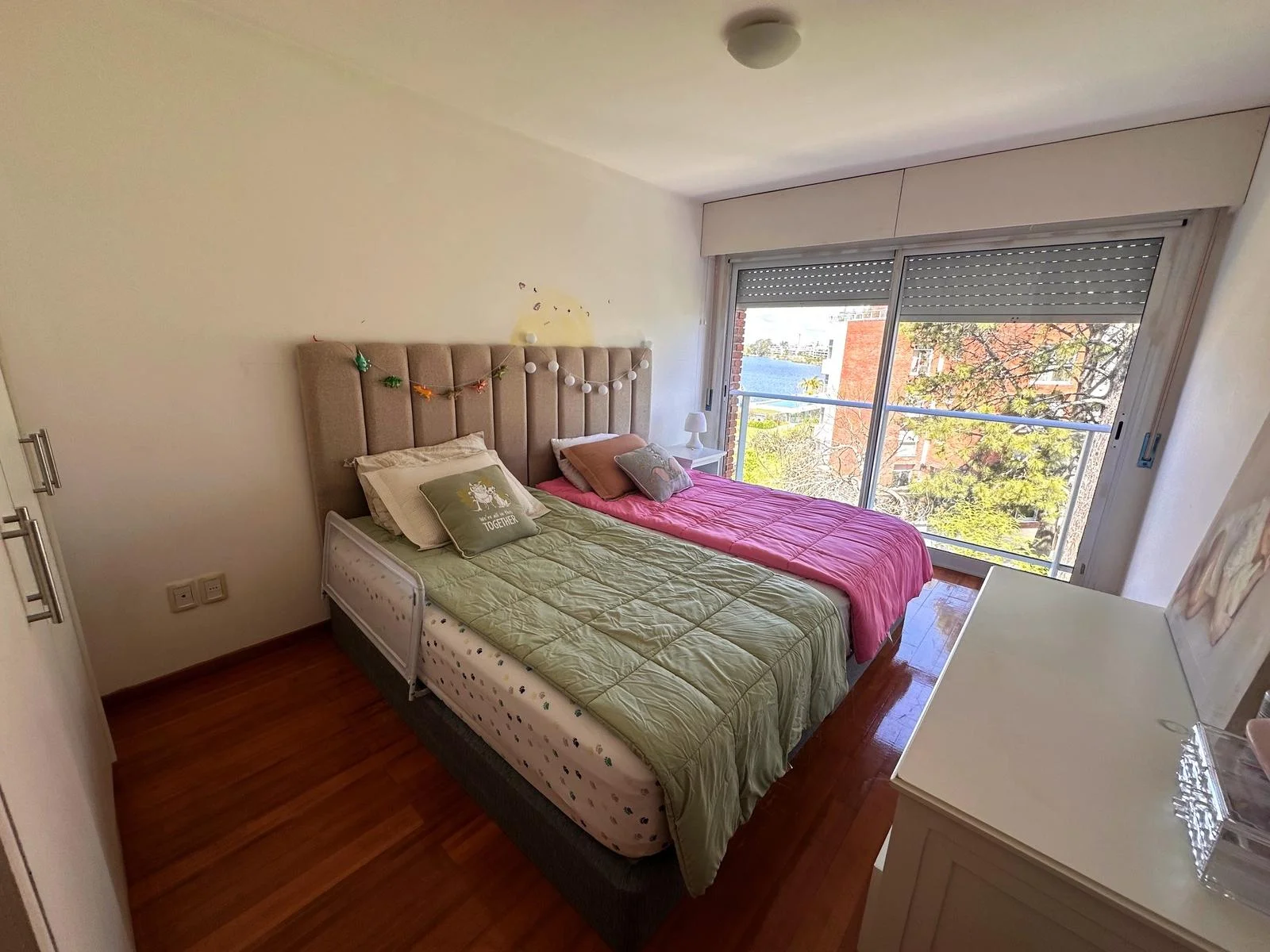Dos dormitorios muy generosos y luminosos, uno con placares y el principal con vestidor y en suite, persianas en ambos.