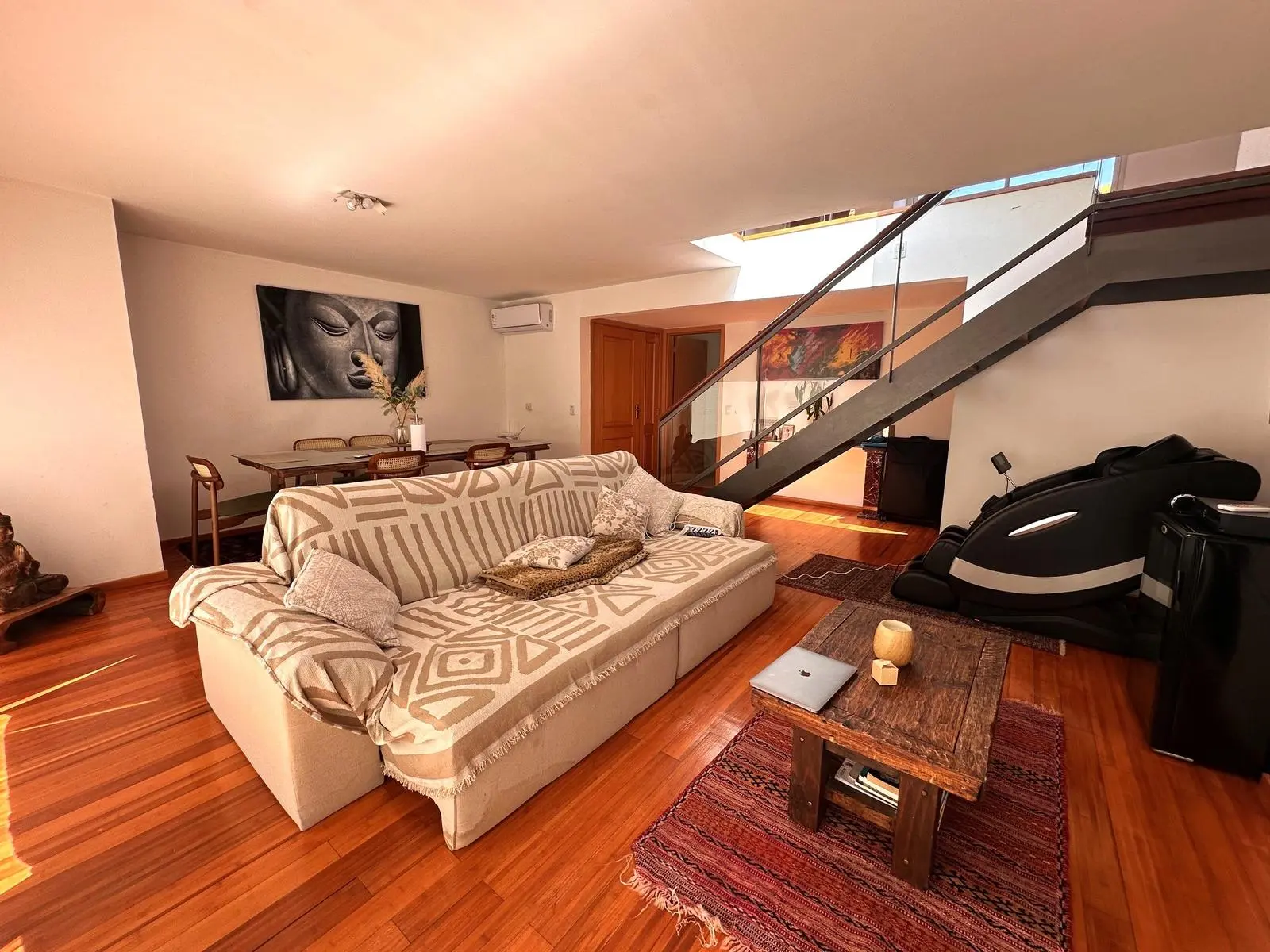 Por escalera acceso a loft o estar de gran tamaño, baño, lavadero y pequeño escritorio.