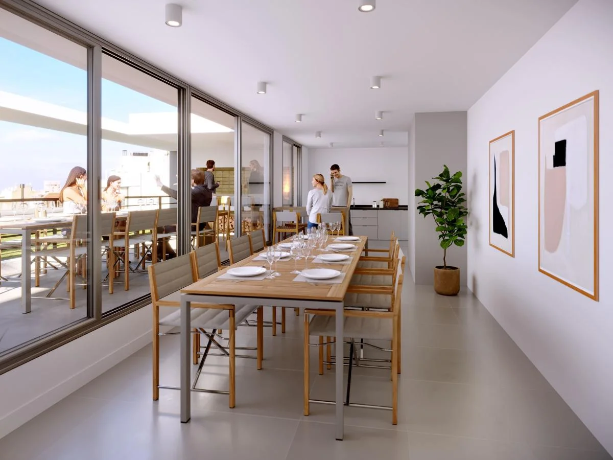 El edificio tiene 10 pisos, con un total de 88 unidades, todas con terraza y buena orientación. Dispone de 44 plazas de garaje ubicadas en planta baja y subsuelo, hall de acceso equipado y 2 ascensores de última generación. En la azotea se encuentran 2 barbacoas de uso común, ambas equipadas con parrilleros, cocina y baños.