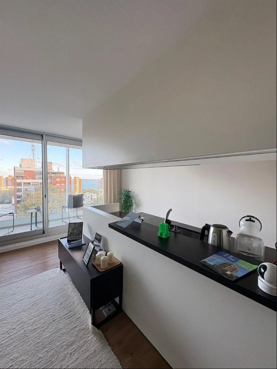 El living comedor es muy luminoso y tiene la cocina integrada todo con salida a una terraza con vista a la Rambla. La cocina es muy cómoda y tiene terraza lavadero. Dos dormitorios con placares y un baño completo con mampara.