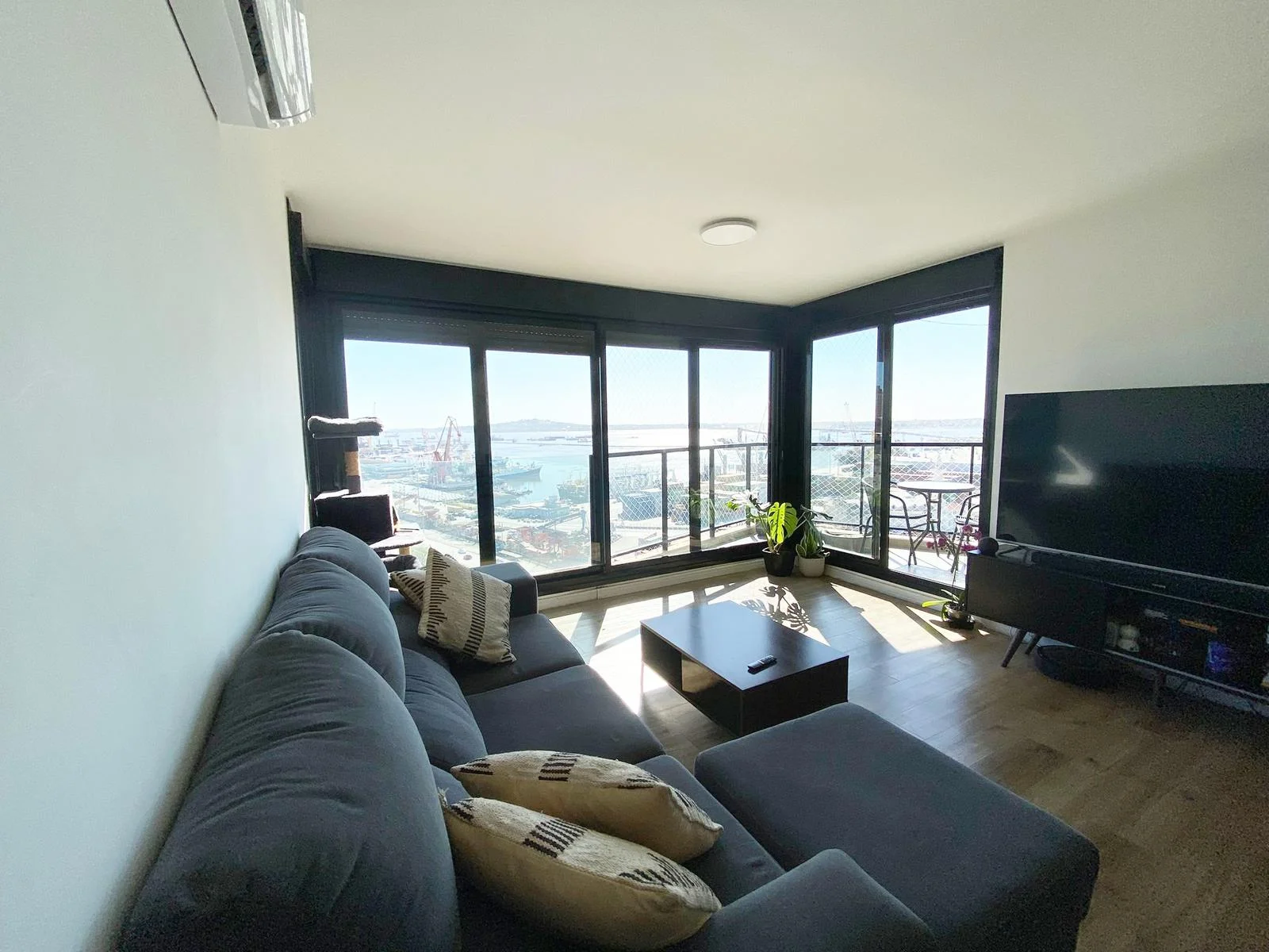 Hermoso apartamento de dos dormitorios y balcón, con vista a la bahía.