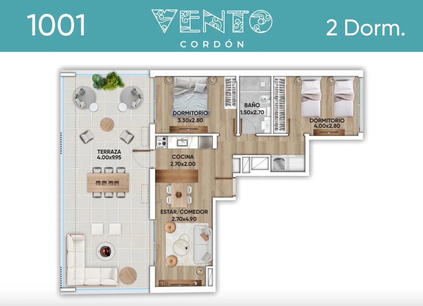 Apartamento de 2 dormitorios en Vento Cordón, ubicado en Fernández Crespo, entre Uruguay y Paysandú, Cordón.