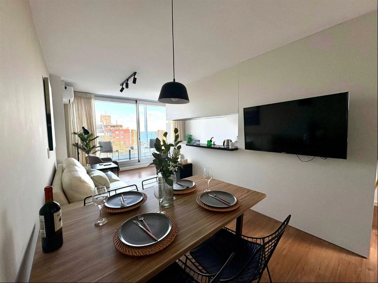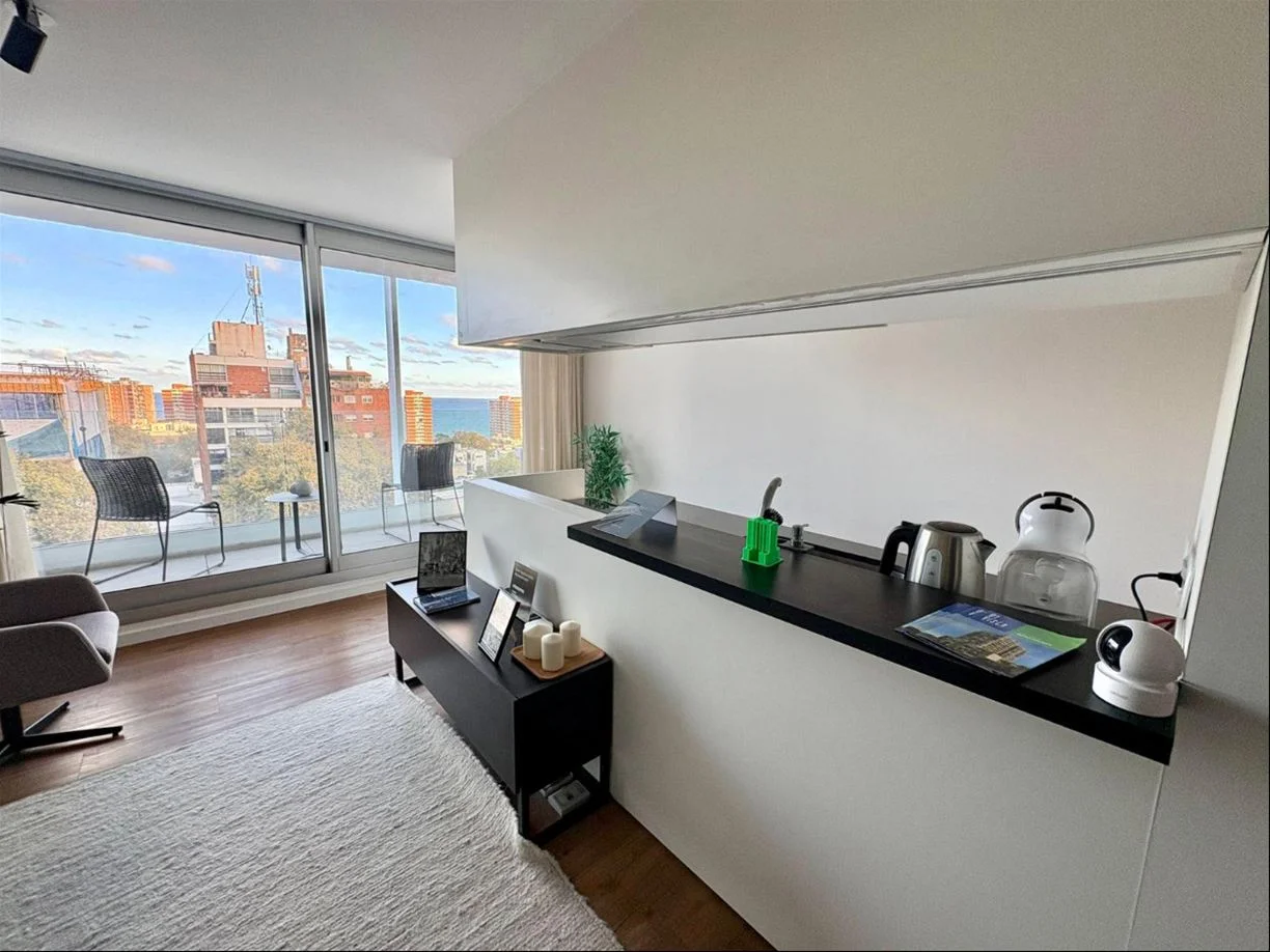 El living comedor es muy luminoso y tiene la cocina integrada todo con salida a una terraza con vista a la Rambla. La cocina es muy cómoda y tiene terraza lavadero. Dos dormitorios con placares y un baño completo con mampara.