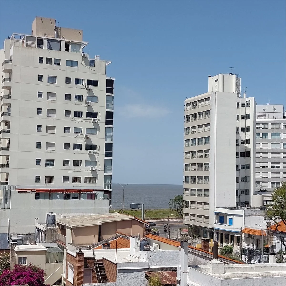 A 3 cuadras de la Rambla, muy lindo apartamento todo al frente, con vista lateral al mar. Muy luminoso con amplios ambientes en impecable estado. Living comedor con ventanal de piso a techo. Cocina con profusión de placares bajo y sobre mesada, anafe, campana y horno.- 2 dormitorios, principal grande en suite, el 2do con placard y salida a terraza de 17m2 y otro baño completo. Garaje fijo, laundry y salón de reuniones. Gastos comunes $ 6.300.- con fondo de reserva incluido.