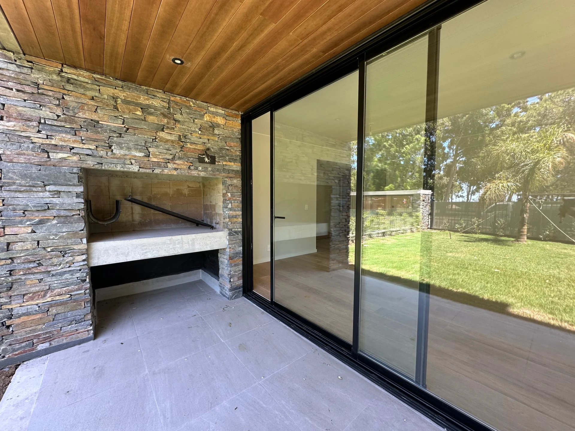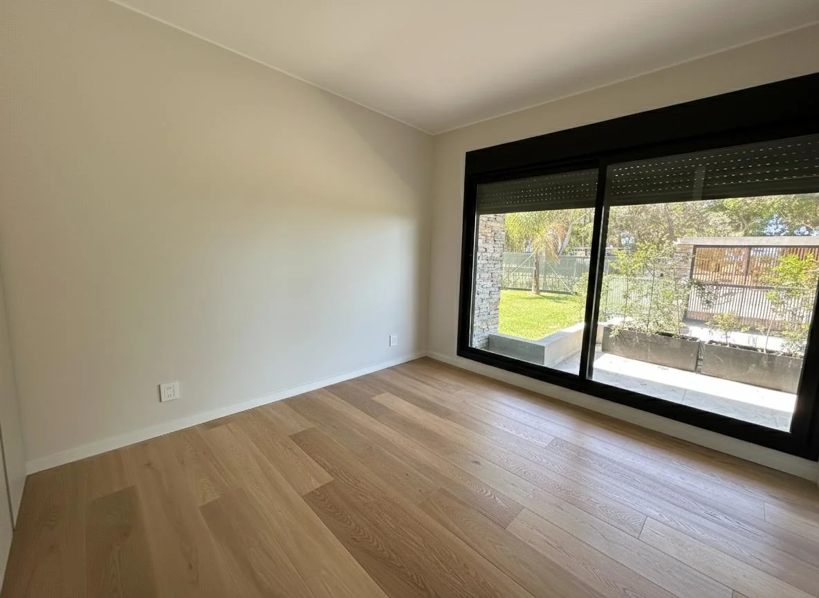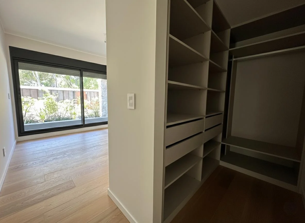 La unidad de tres dormitorios, está ubicada en planta baja, al frente, con orientación Este. Cuenta con living comedor con estufa, cocina definida con acceso a terraza lavadero, 3 dormitorios (el principal en suite con vestidor), amplio jardín con parrillero en galería e incluye dos garajes.