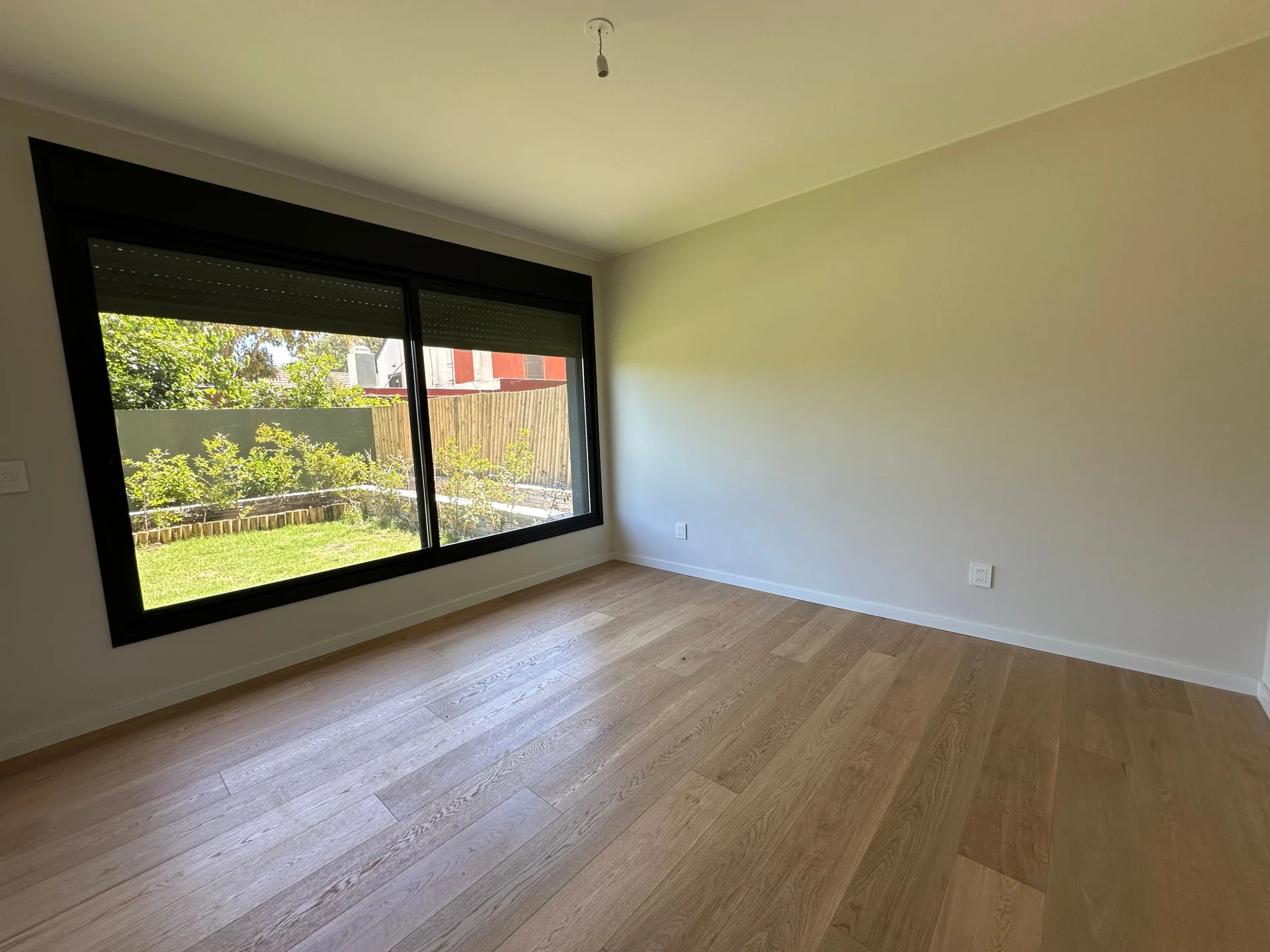 La unidad de tres dormitorios, está ubicada en planta baja, al frente, con orientación Este. Cuenta con living comedor con estufa, cocina definida con acceso a terraza lavadero, 3 dormitorios (el principal en suite con vestidor), toilette, dos baños completos, amplio jardín con parrillero en galería e incluye dos garajes.