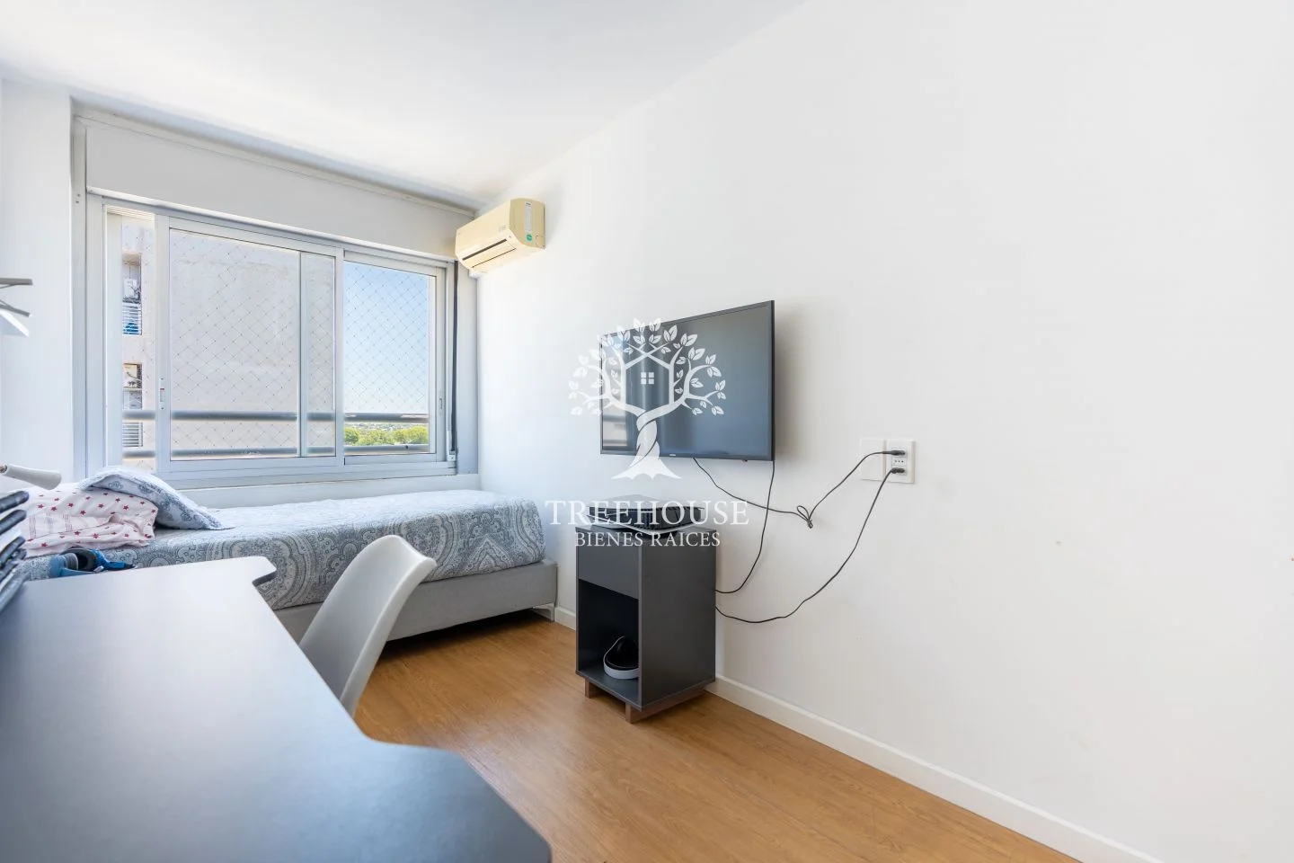 Se trata de un apartamento de 3 dormitorios, 2 baños completos (uno en suite), living-comedor amplio, cocina semi-integrada con opción de cerrarse por completo, terraza lavadero independiente y doble garaje muy cómodo.