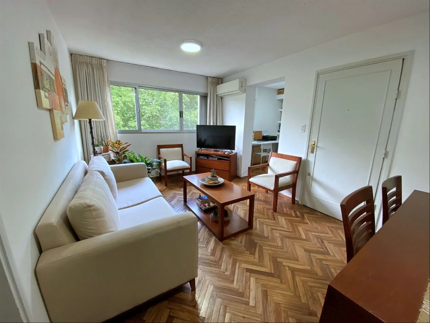 • Living-comedor amplio con aire acondicionado y conexión con el escritorio