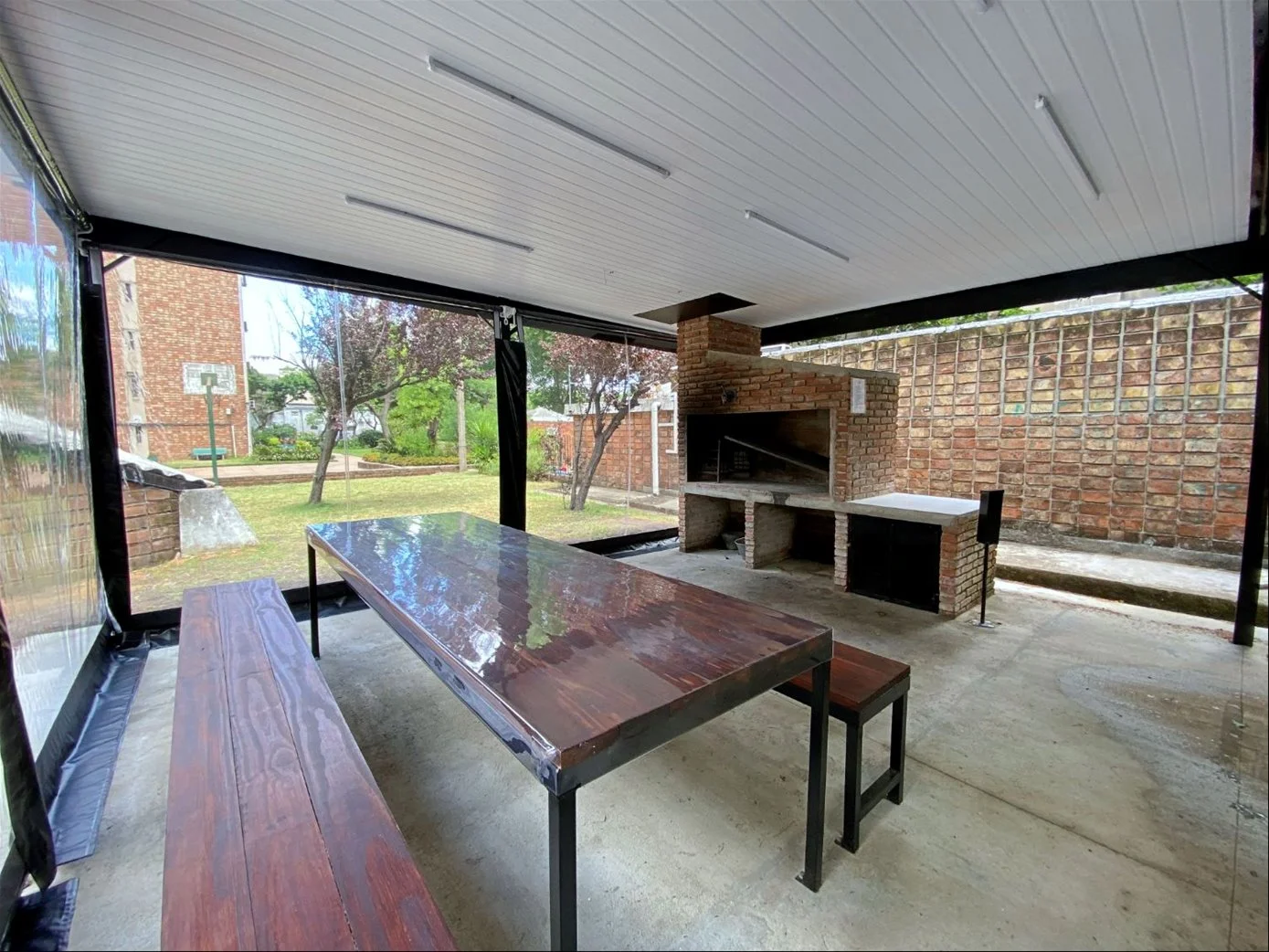 • Parrillero techado con gran mesada y bancos para reuniones.