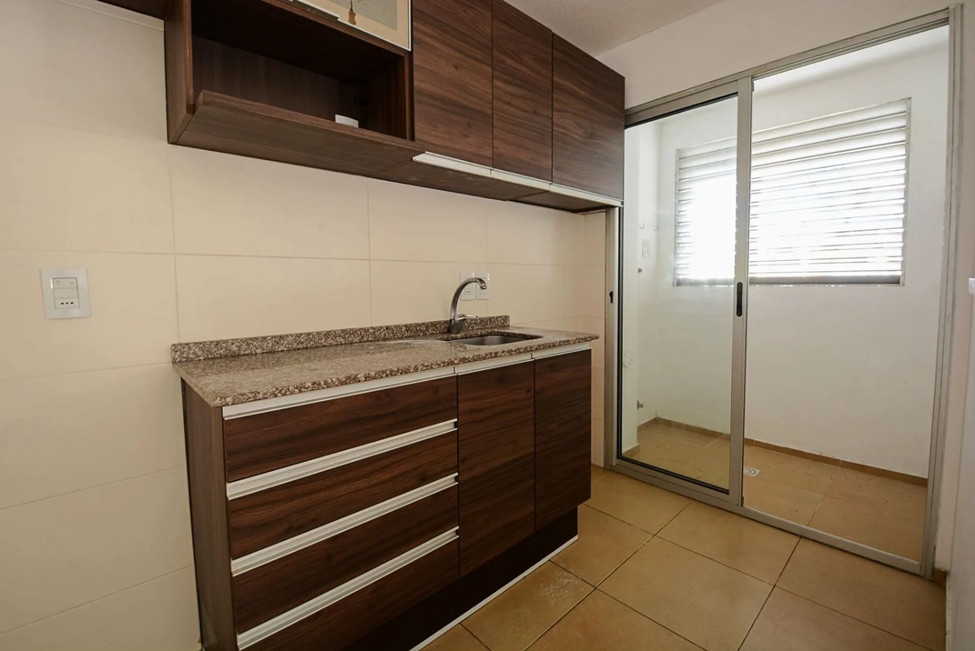 -Cocina semi integrada, con barra desayunadora y salida a terraza lavadero. La cocina cuenta con placares sobre y bajo mesada.