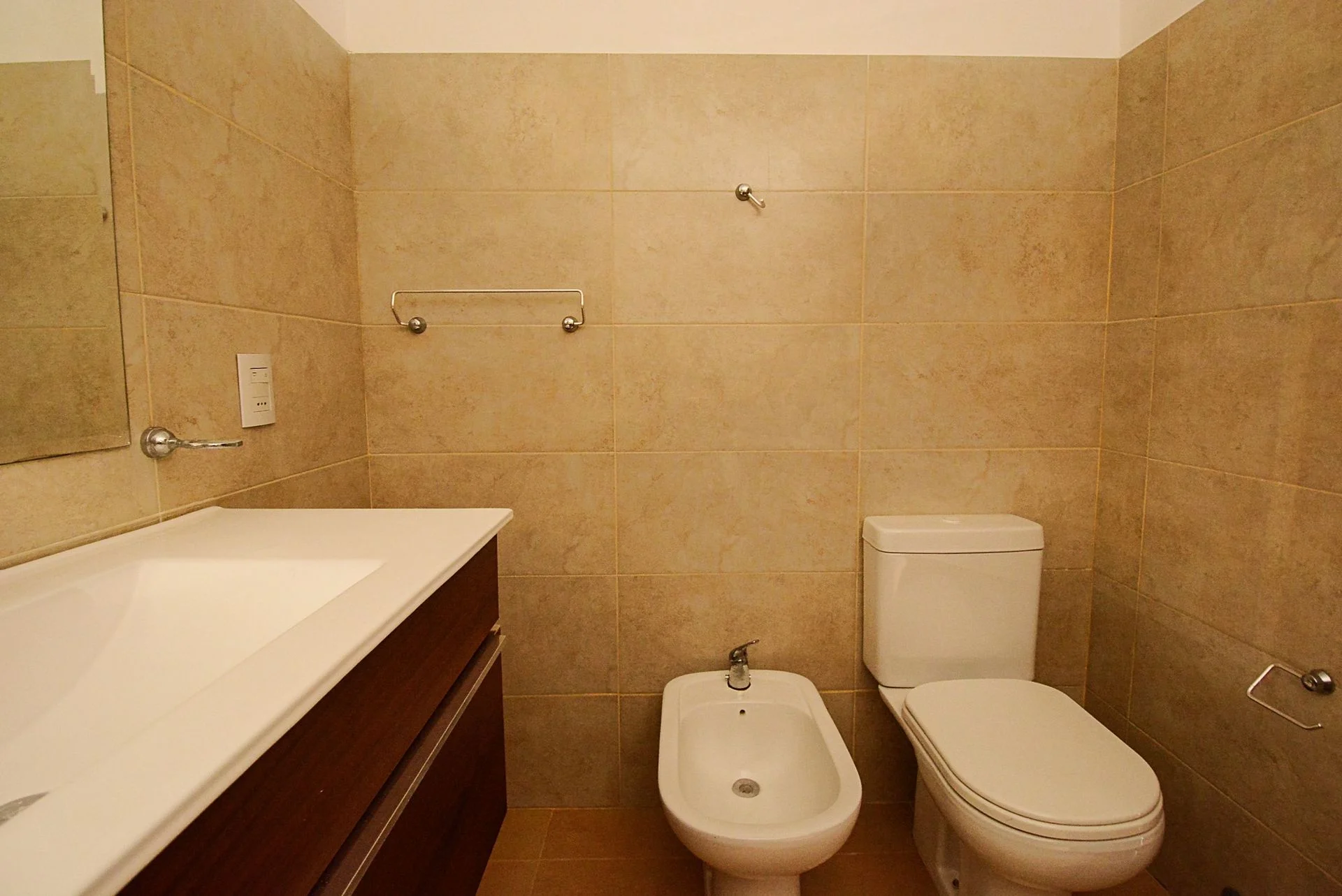 -Un baño completo, de generosas dimensiones, muy funcional.