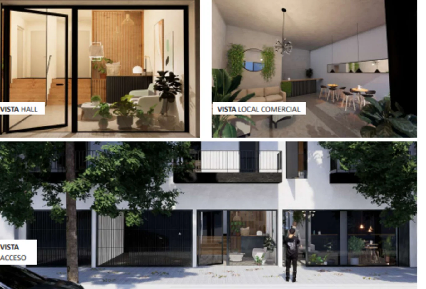 La planta baja ofrece un local comercial, acceso calificado, 11 cocheras (6 techadas) y espacios para bicicletas. El subsuelo dispone de 14 cocheras techadas y más lugares para bicicletas. El acceso a cocheras se realiza mediante rampa móvil mecánica en planta baja y rampa fija de hormigón hacia el subsuelo.