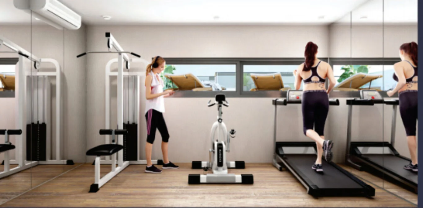 Bienestar y deporte: gimnasio de última generación, piscina exterior con solárium
