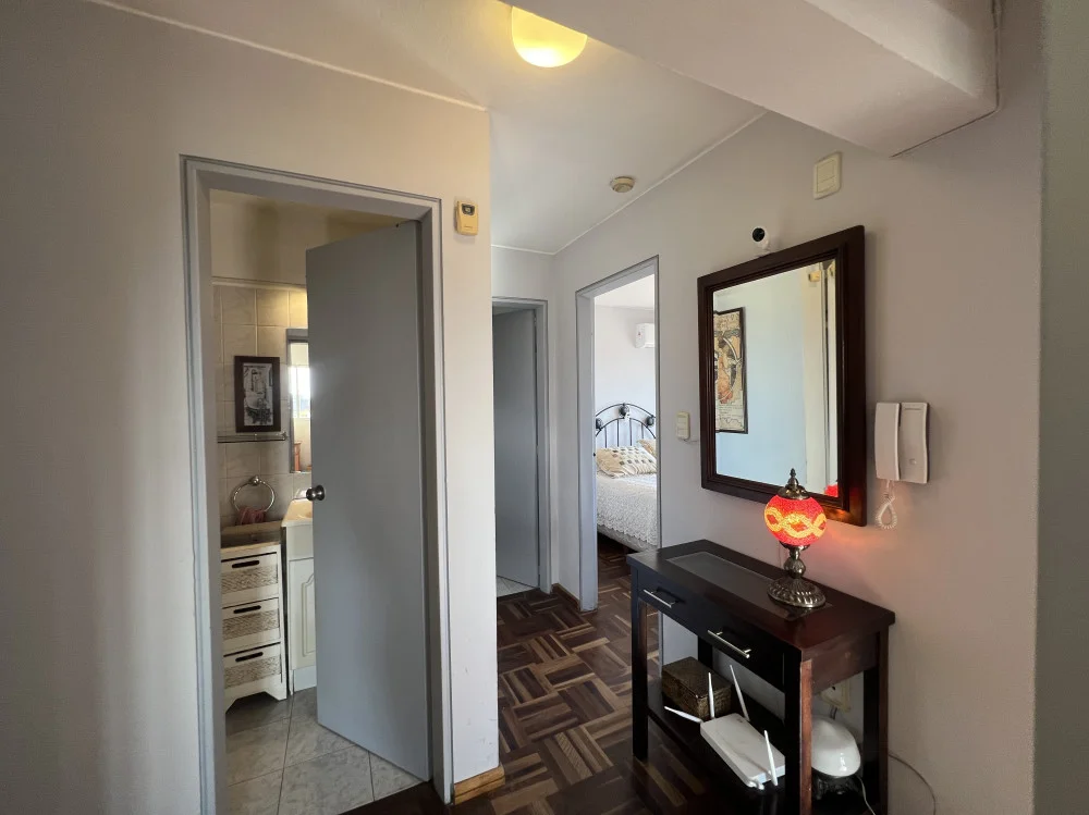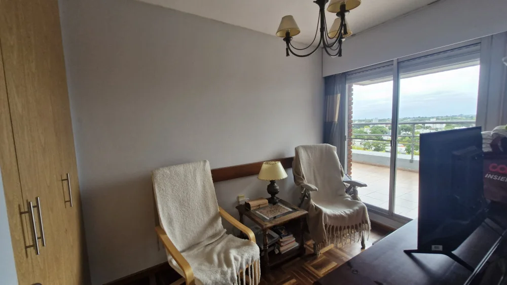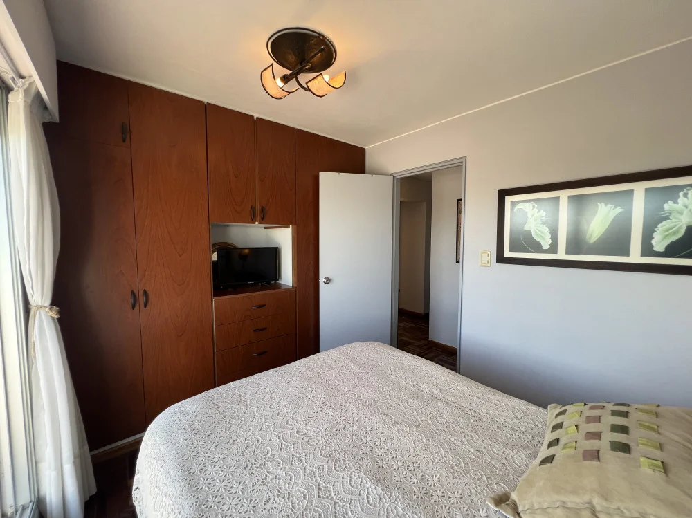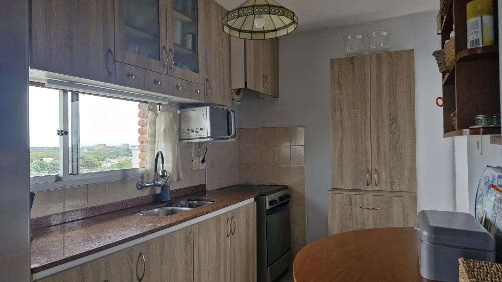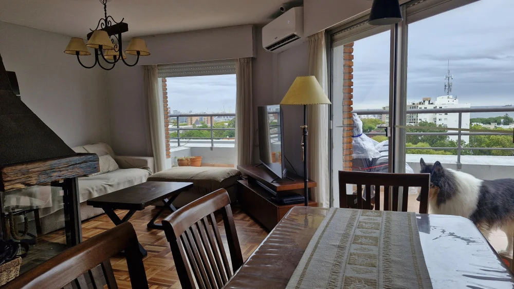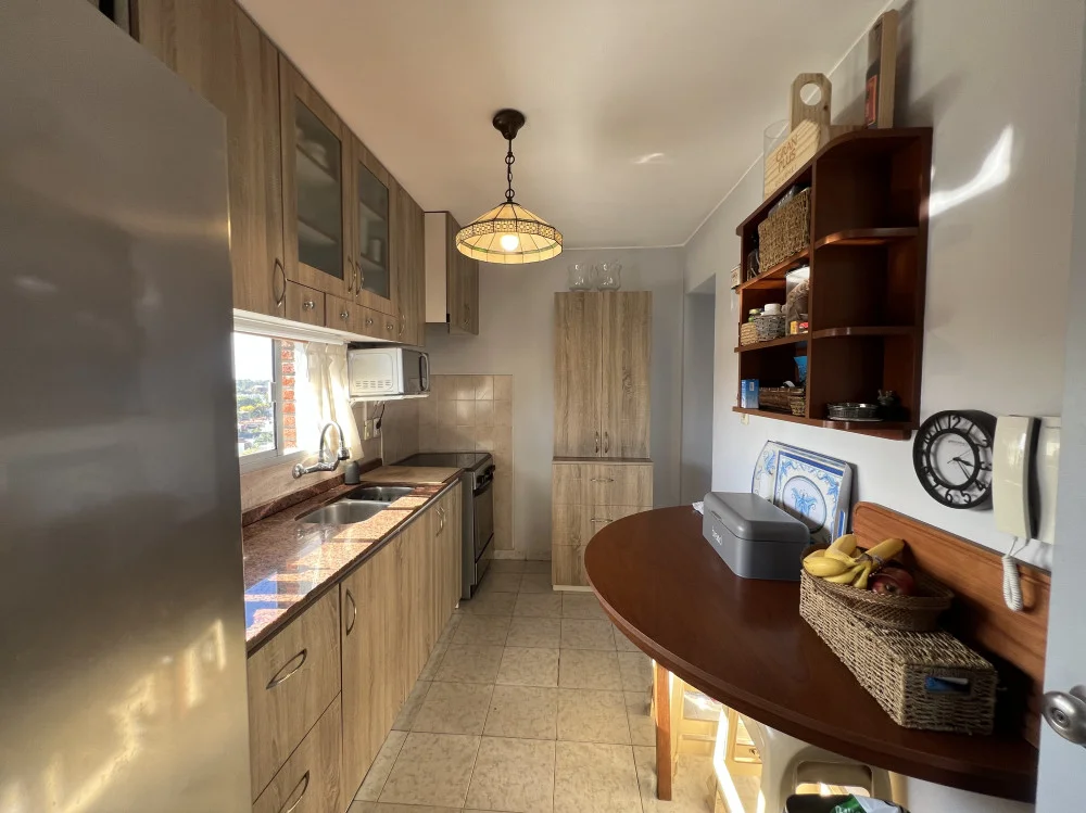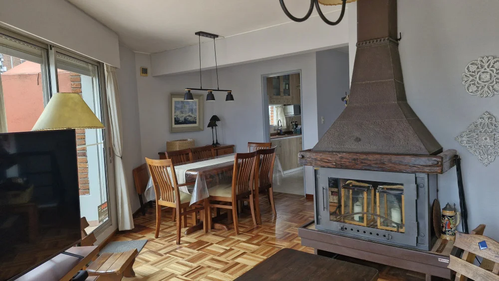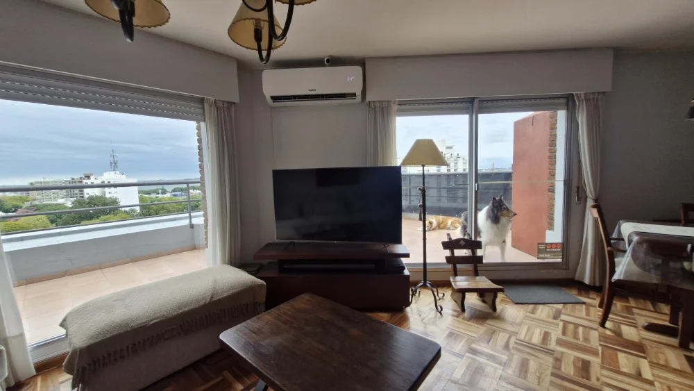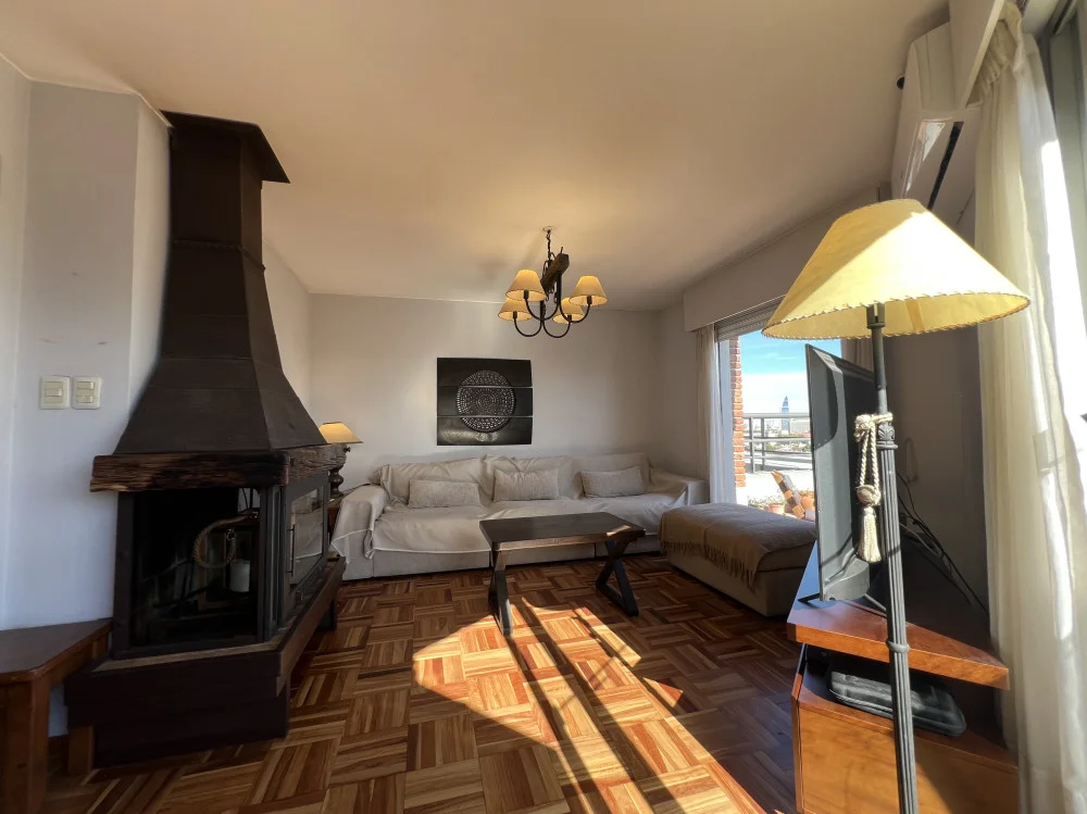 PA: Living-Comedor con hogar, cocina integrada con terraza de servicio, amplia terraza de 22m2 con parrillero y vista a la bahía.