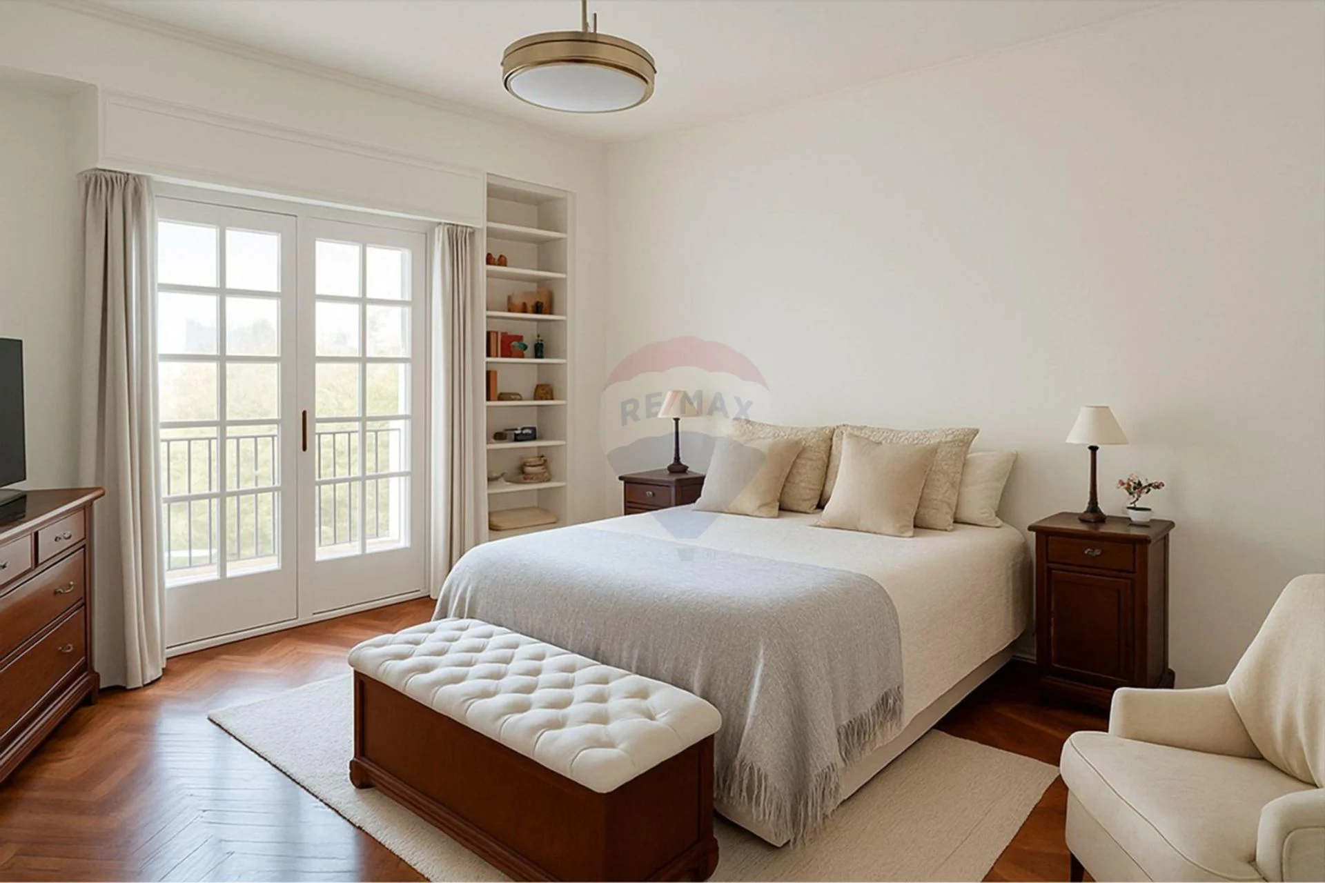 Adentro, el apartamento conserva esa calidez clásica con carpintería de primer nivel, pisos de parquet, molduras, balcón con baranda de época y ventanales que inundan de luz natural los ambientes.