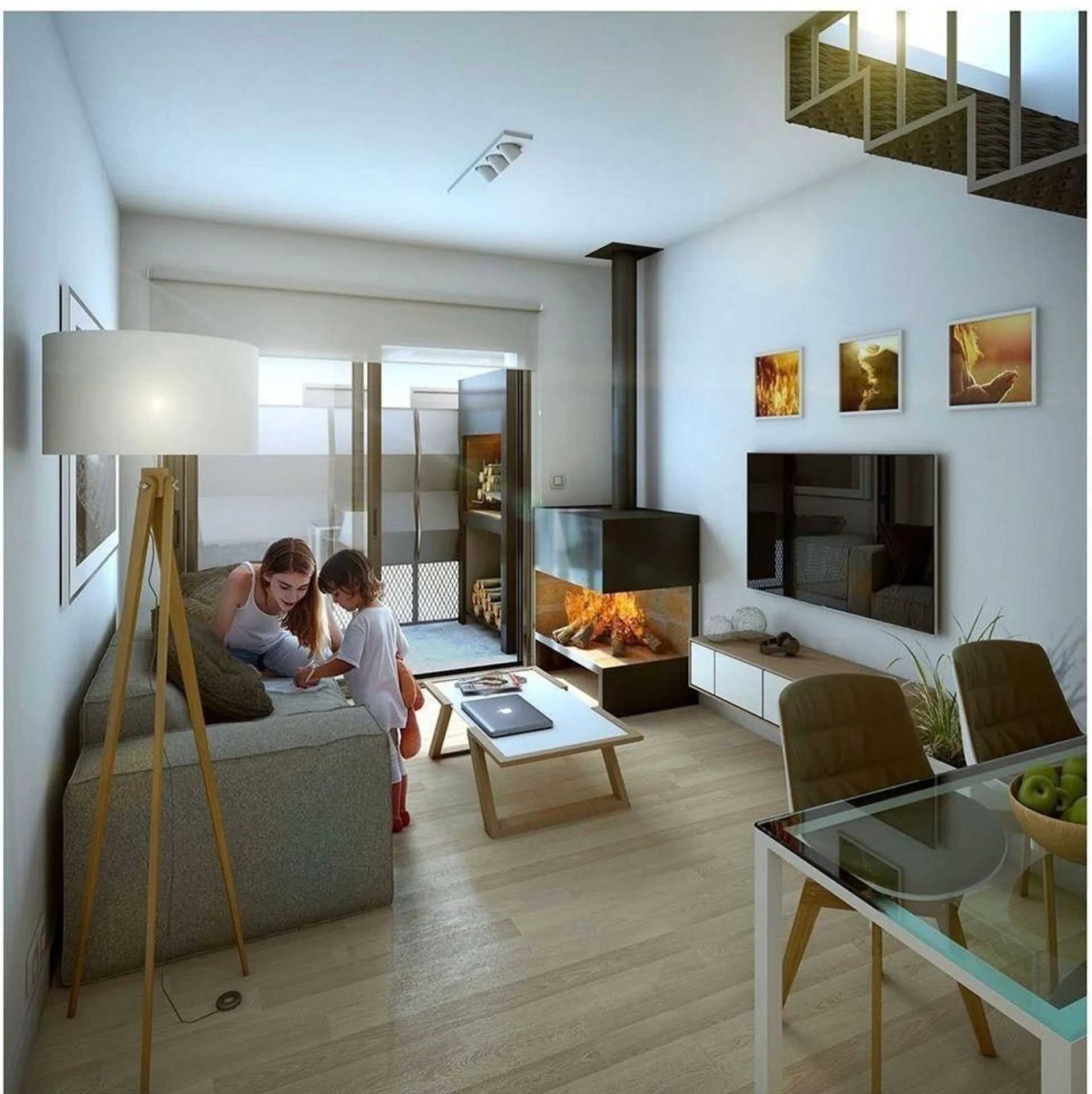 Living comedor con estufa de alto rendimiento.