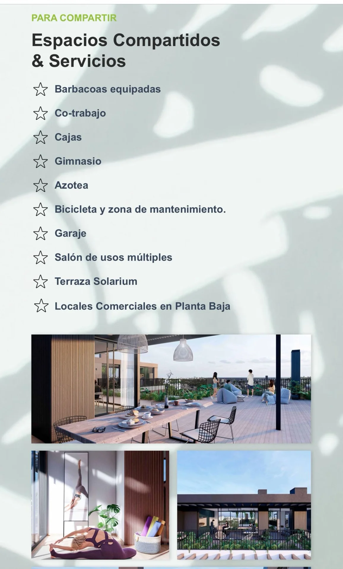 El edificio cuenta con variedad de áreas compartidas, tales como rooftop, barbacoas totalmente equipadas, gimnasio, laundry, cowork, salas de usos múltiples, boxes, entre otros.
