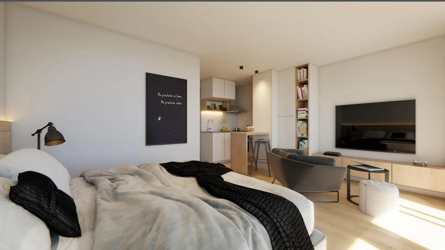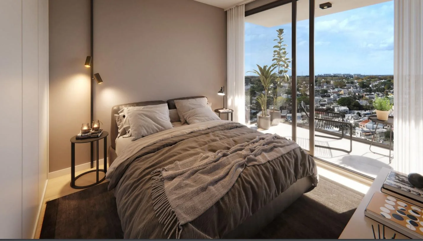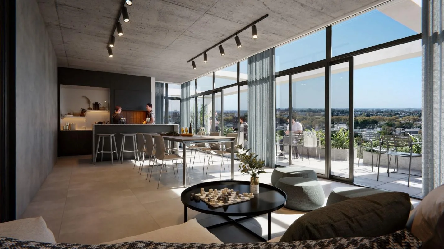 Living comedor con salida a terraza Cocina integrada con placares bajo y sobre mesada Dormitorio con placar salida a Terraza. Baño Completo Opción de Garaje Barbacoa de uso común en el último piso