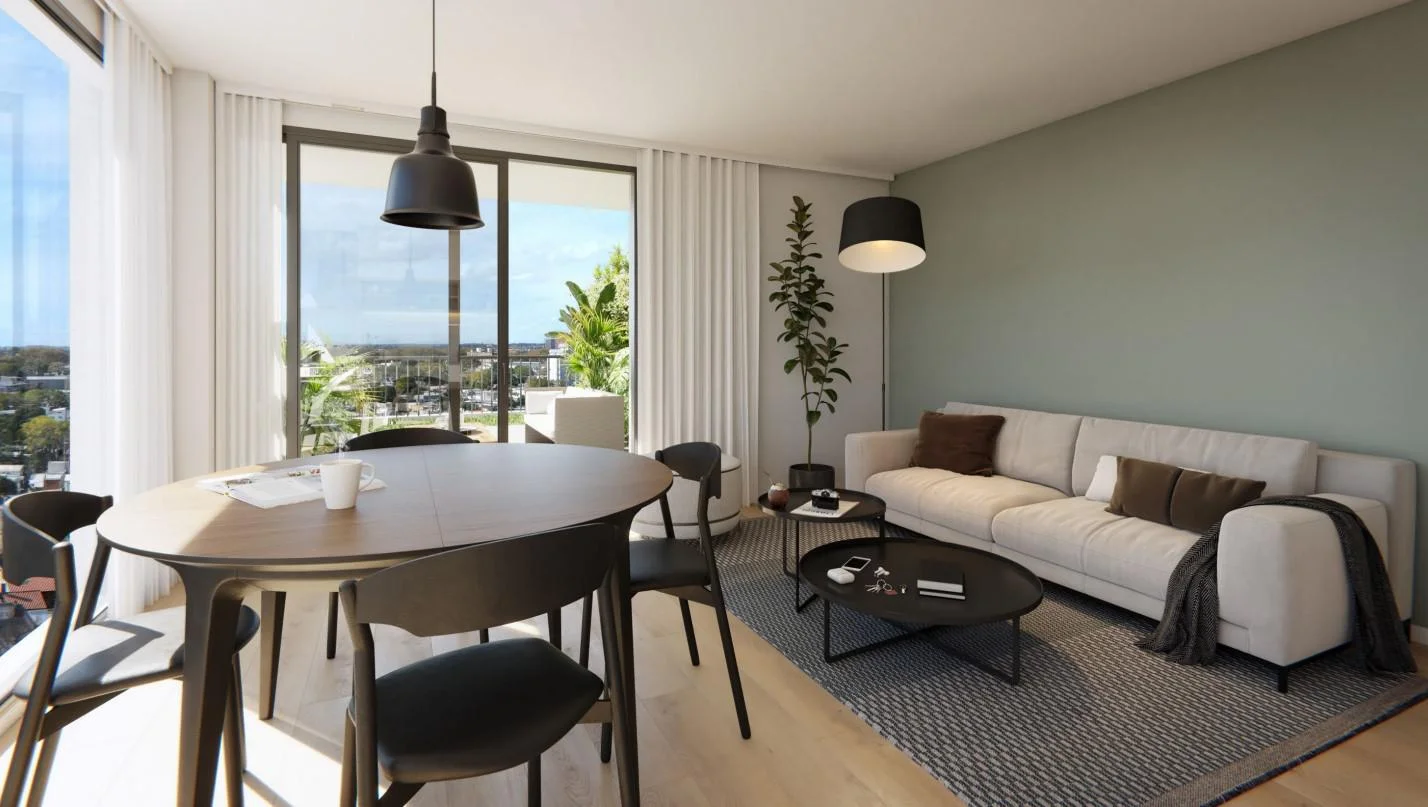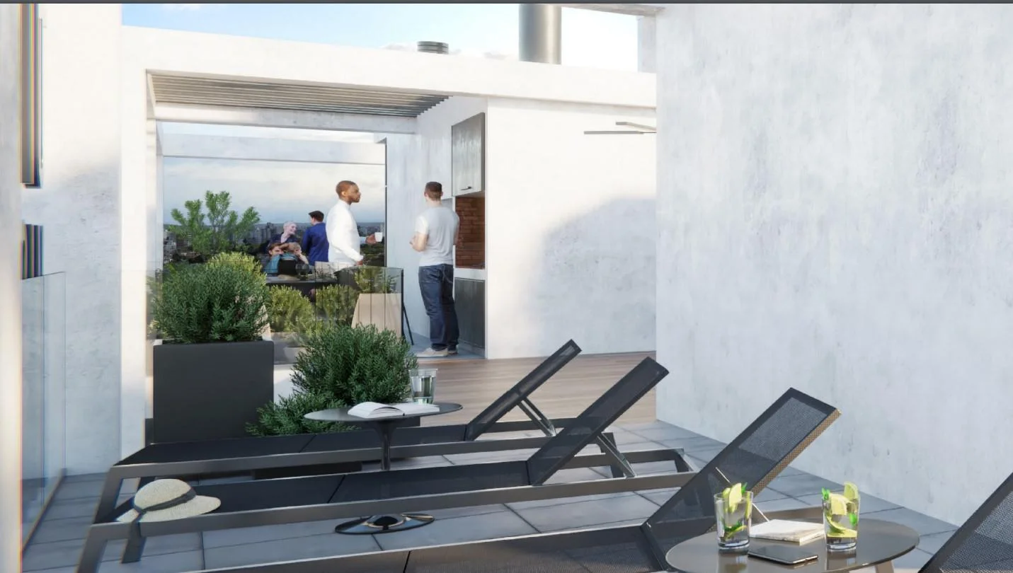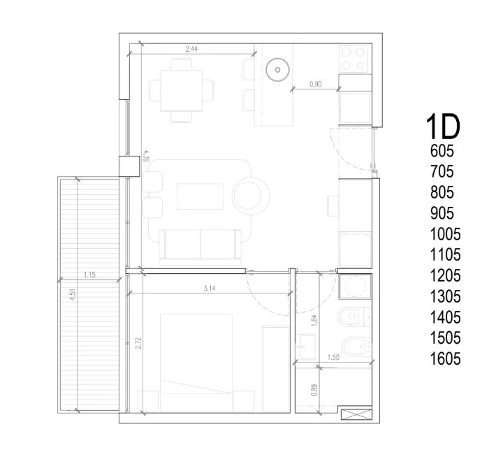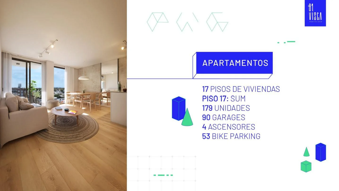 Living comedor con salida a terraza Cocina integrada con placares bajo y sobre mesada Dormitorio con placar salida a Terraza. Baño Completo Opción de Garaje Barbacoa de uso común en el último piso
