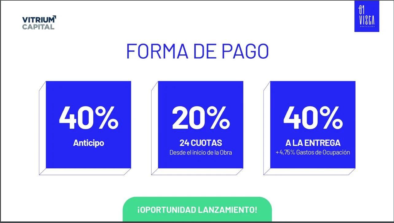 Seguridad 24 Horas Forma de Pago 40% Anticipo, 20% 24 Cuotas dese inicio de obra, 40% A la entrega +,4,75 Gastos de ocupación Se proyecta inicio de obra para el segundo trimestre de 2024, desde ahí 24 meses en obra.