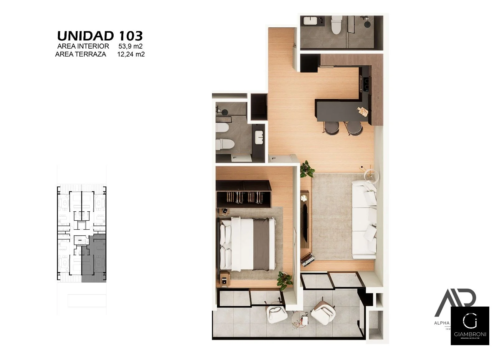 Unidad 103 - *** U$S 150.085 *** Contrafrente - 1 Dormitorio y 2 baños