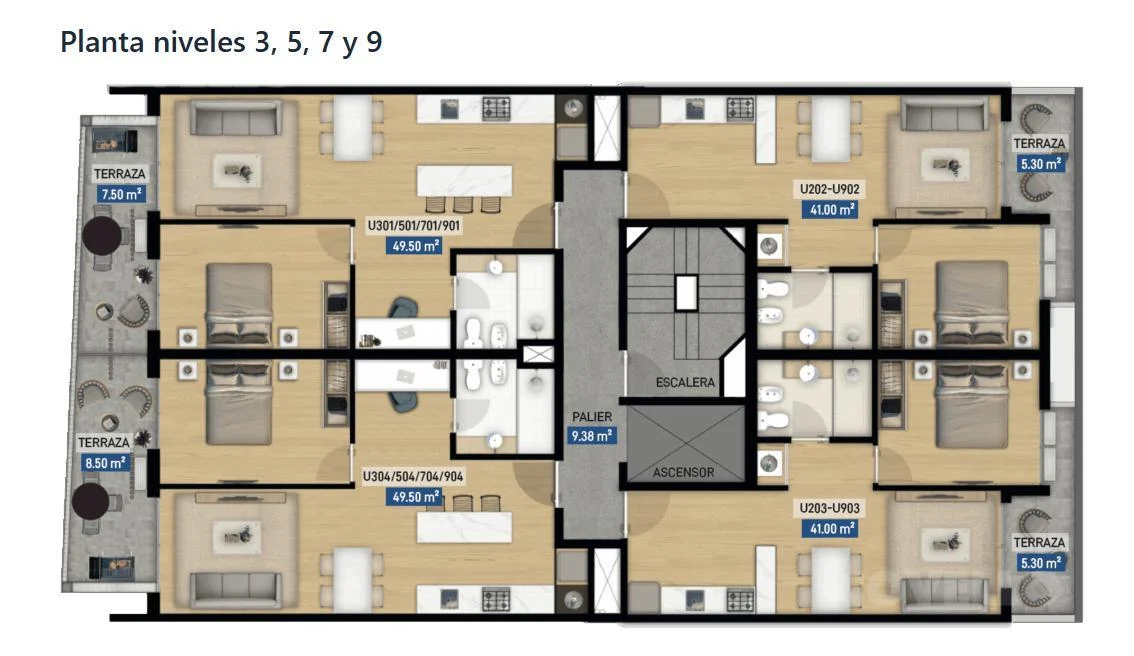 Superficie: 41.5 m² internos + 5.3 m² de terraza.