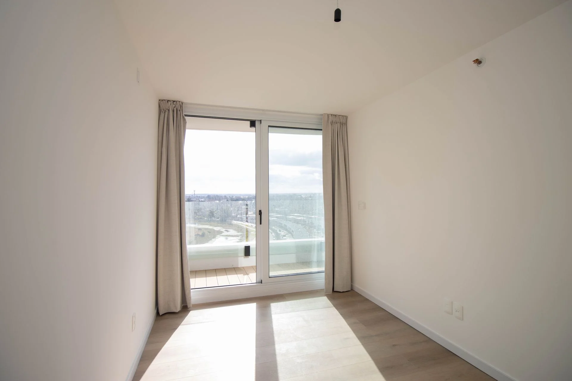 El dormitorio con placar empotrado y ventanal con doble vidrio y acceso al mismo balcón. Cortinas black out.