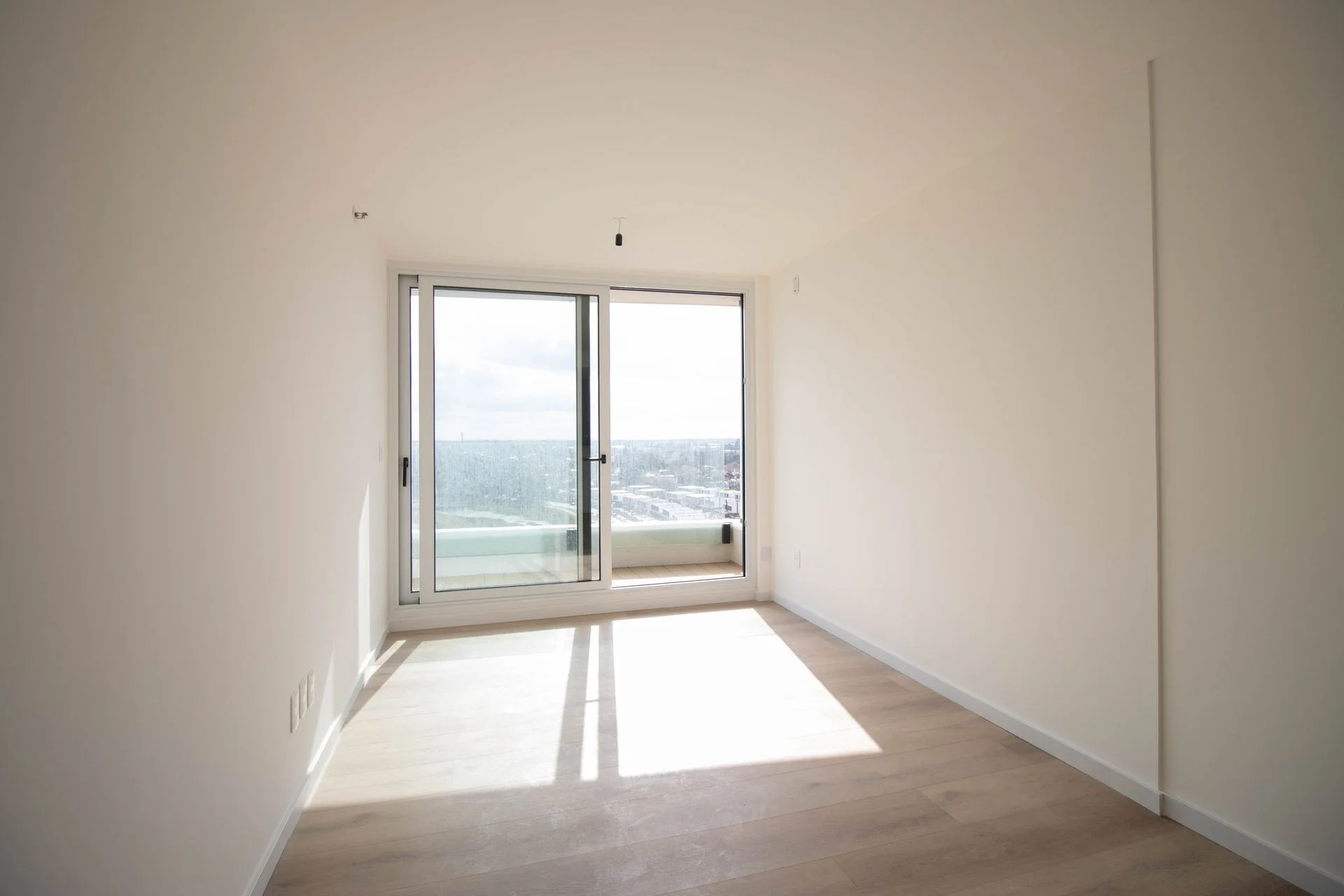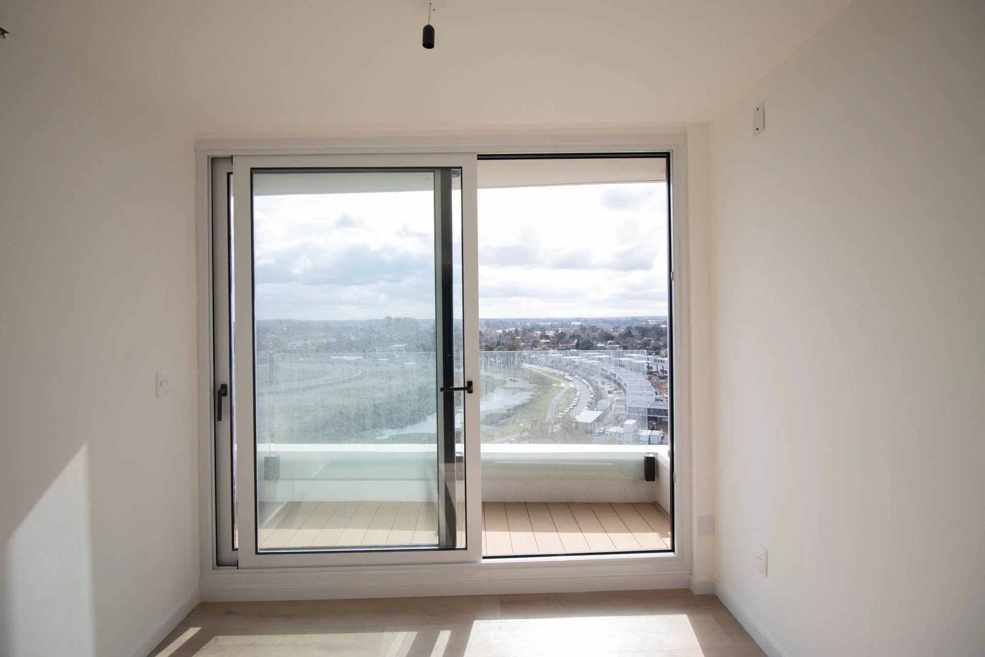 El living con pisos de simil madera tiene un gran ventanal doble vidrio, con acceso a un muy lindo balcón con una increíble vista.