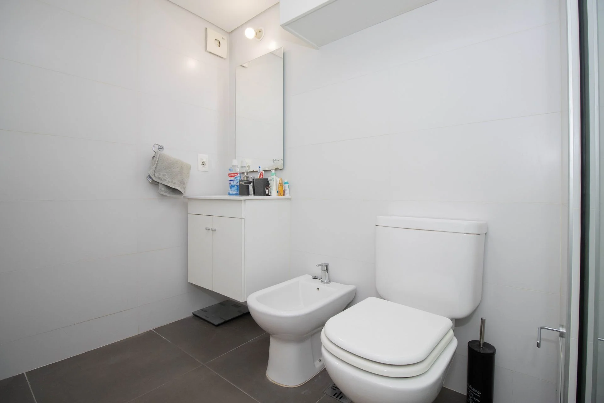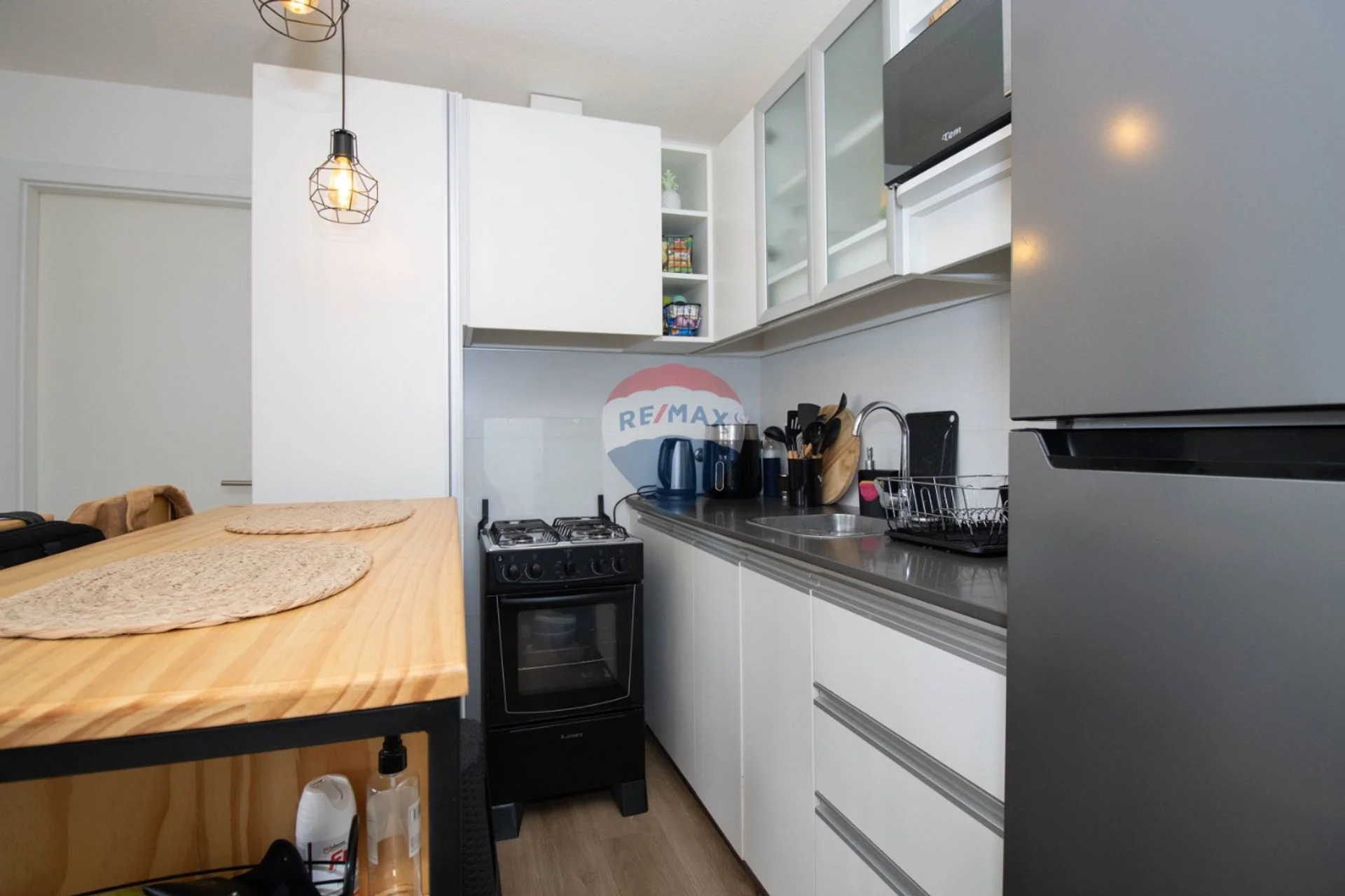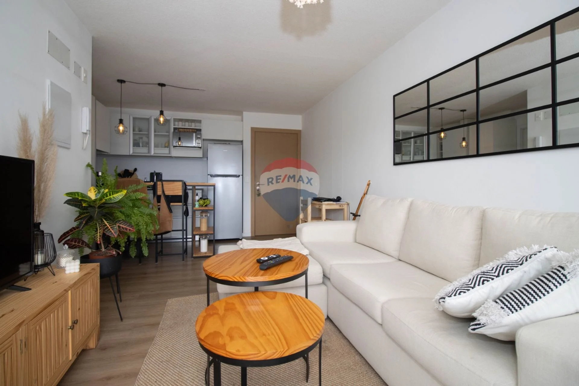 El apartamento tiene un baño muy cómodo y la cocina integrada al living comedor.