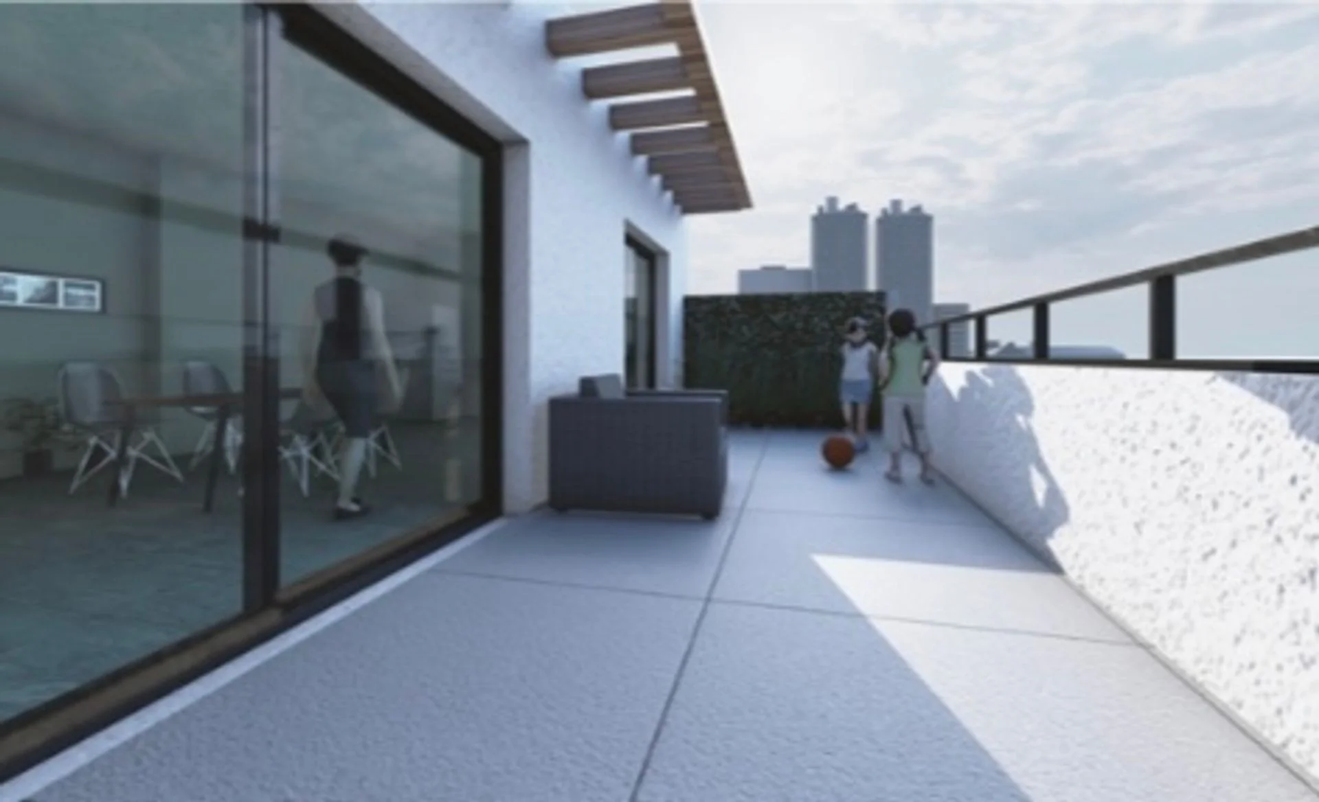 Terraza con baranda de aluminio y cristal de seguridad