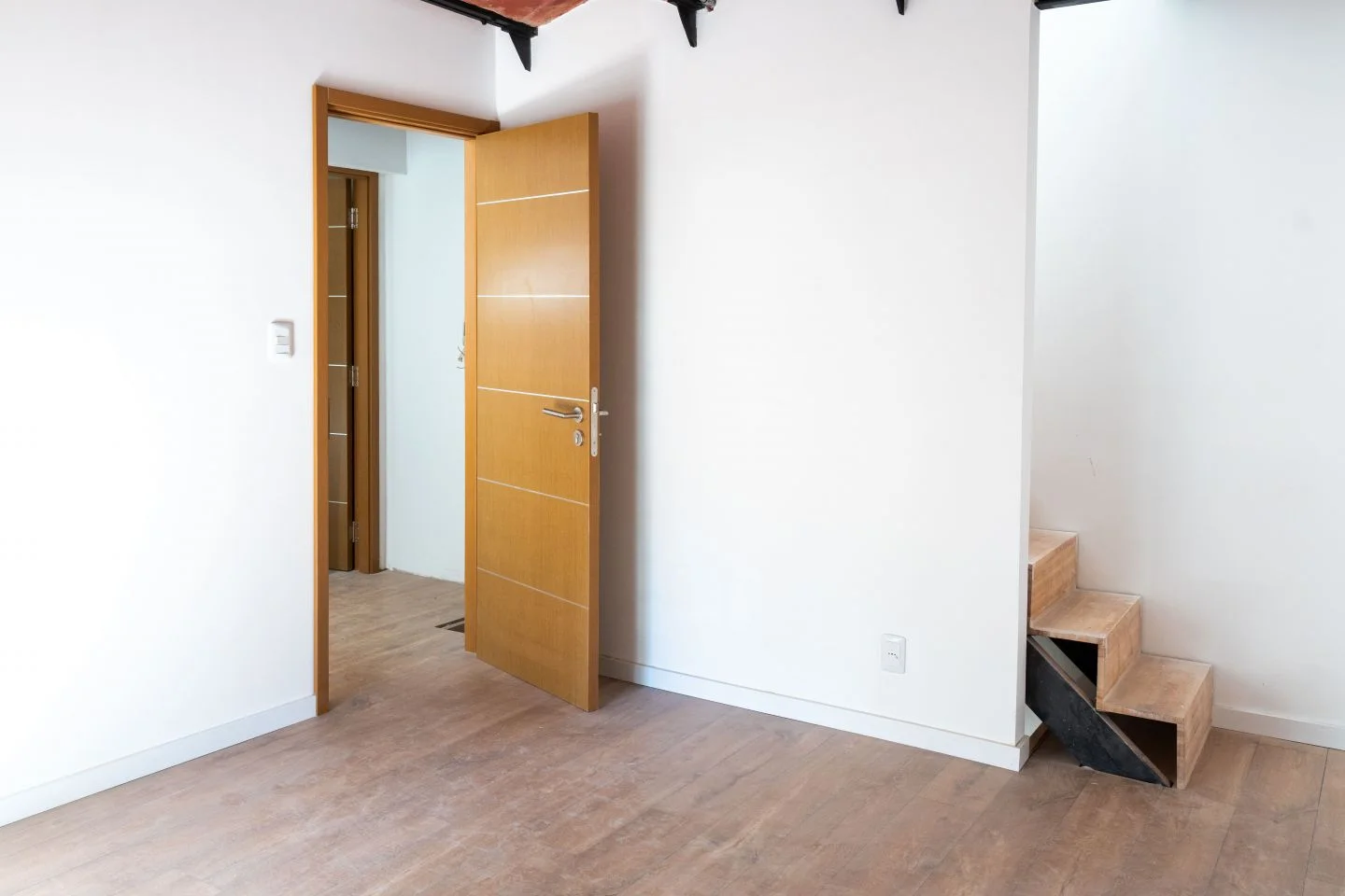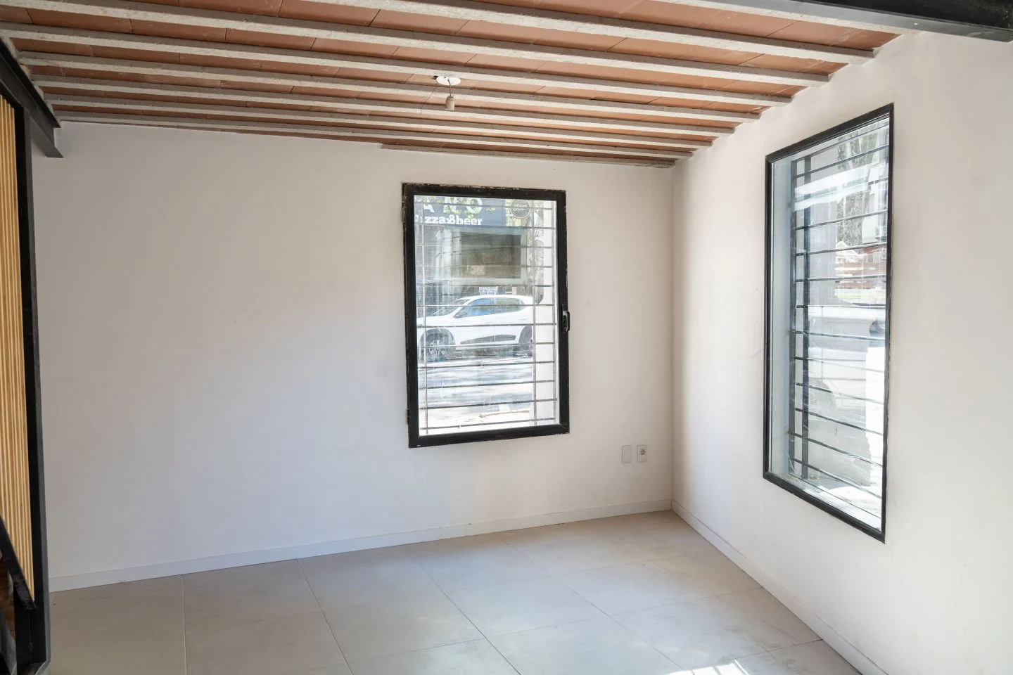 Se ingresa directamente a la planta baja, la cual cuenta con cocina integrada, sala de estar y 2 ventanas que dan al exterior. Subiendo la escalera llegamos al primer piso, el cual cuenta con 1 dormitorio a la izquierda y con 1 baño a la derecha. El dormitorio cuenta con ventana que da al exterior y con una escalera la cual permite subir a la azotea transitable.