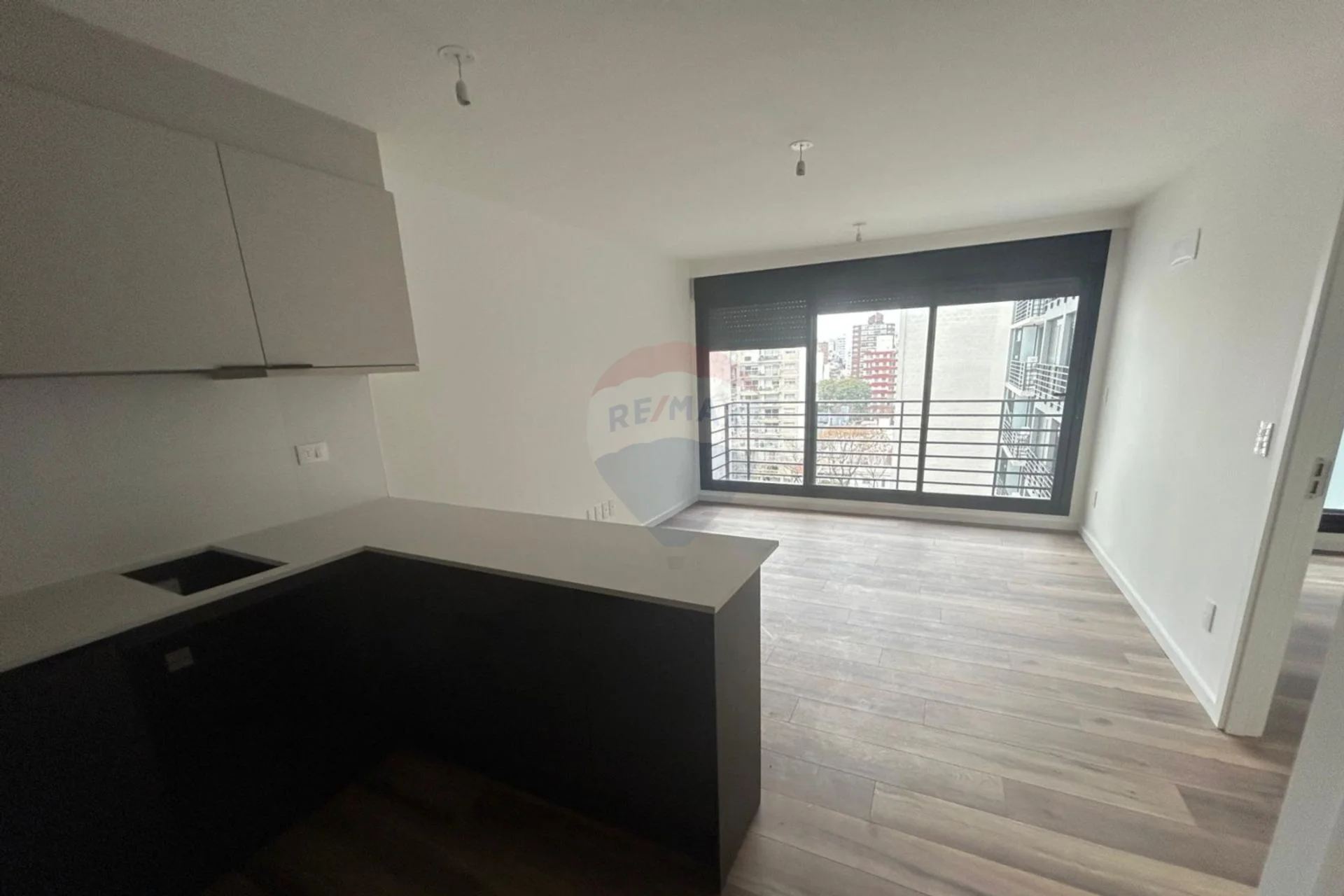 La unidad cuenta con 42,5o mts2 construidos, con un amplio ventanal de aluminio y persianas enrollables, y una cómoda terraza Los suelos son de listones vinílicos estilo madera o flotante. La cocina cuenta con una moderna encimera de cuarzo, pileta de acero inoxidable, muebles de melamina y un grifería de mesada monocomando. Además, el apartamento cuenta con la preinstalación lista para aire acondicionado, incluyendo desagüe y conexión eléctrica.