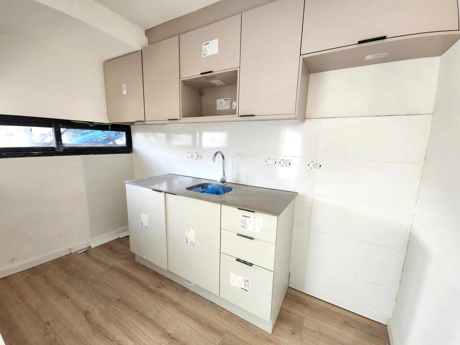 La cocina es semi integrada equipada con muebles bajo y sobre mesada.