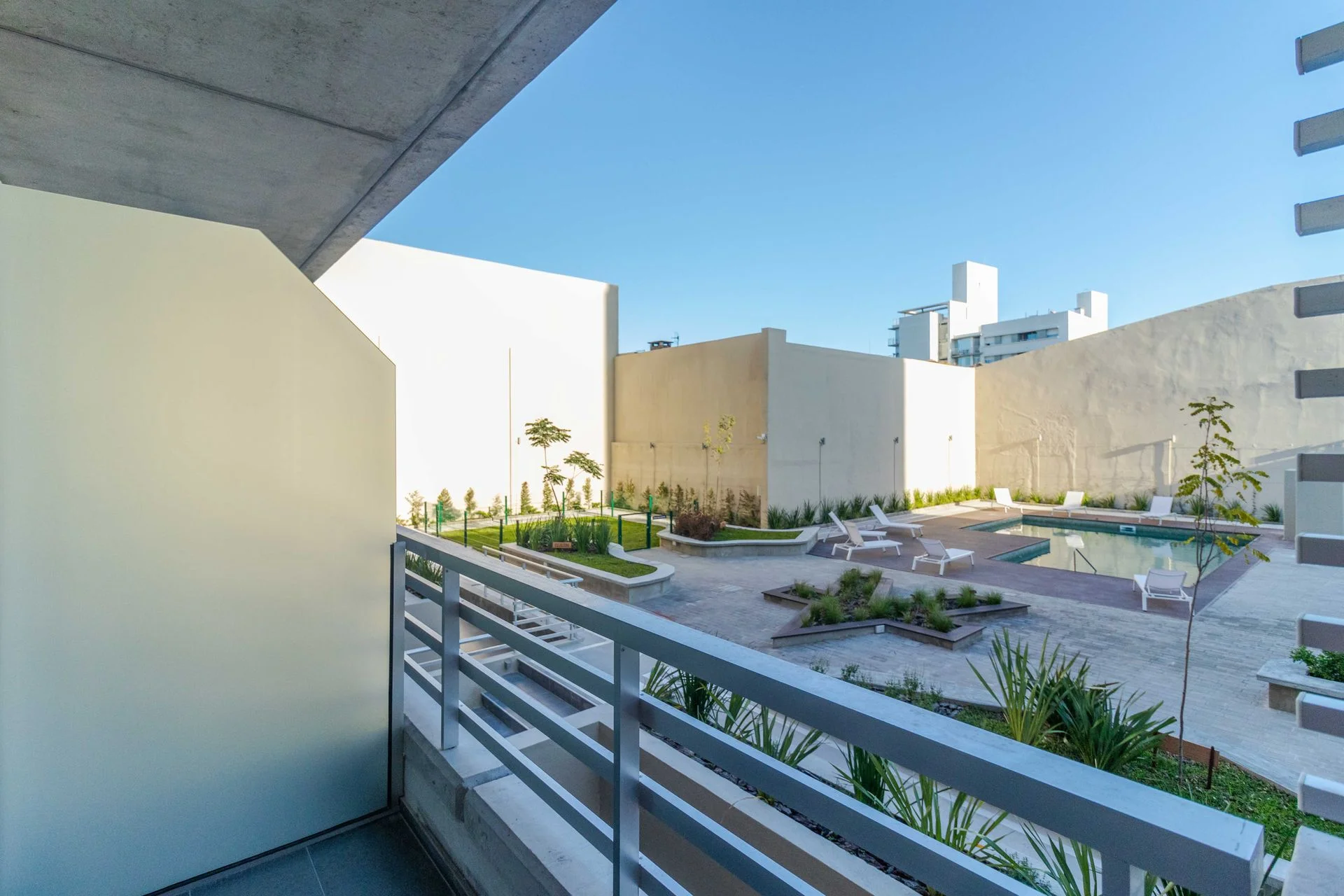 El apartamento está ubicado en un 1er piso disposición contra frente con orientacion oeste, con una vista a la piscina y amenities del edificio, lejos del ruido de la calle y con muy buena orientación.