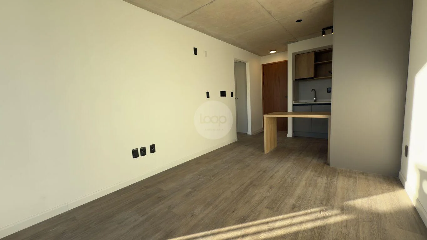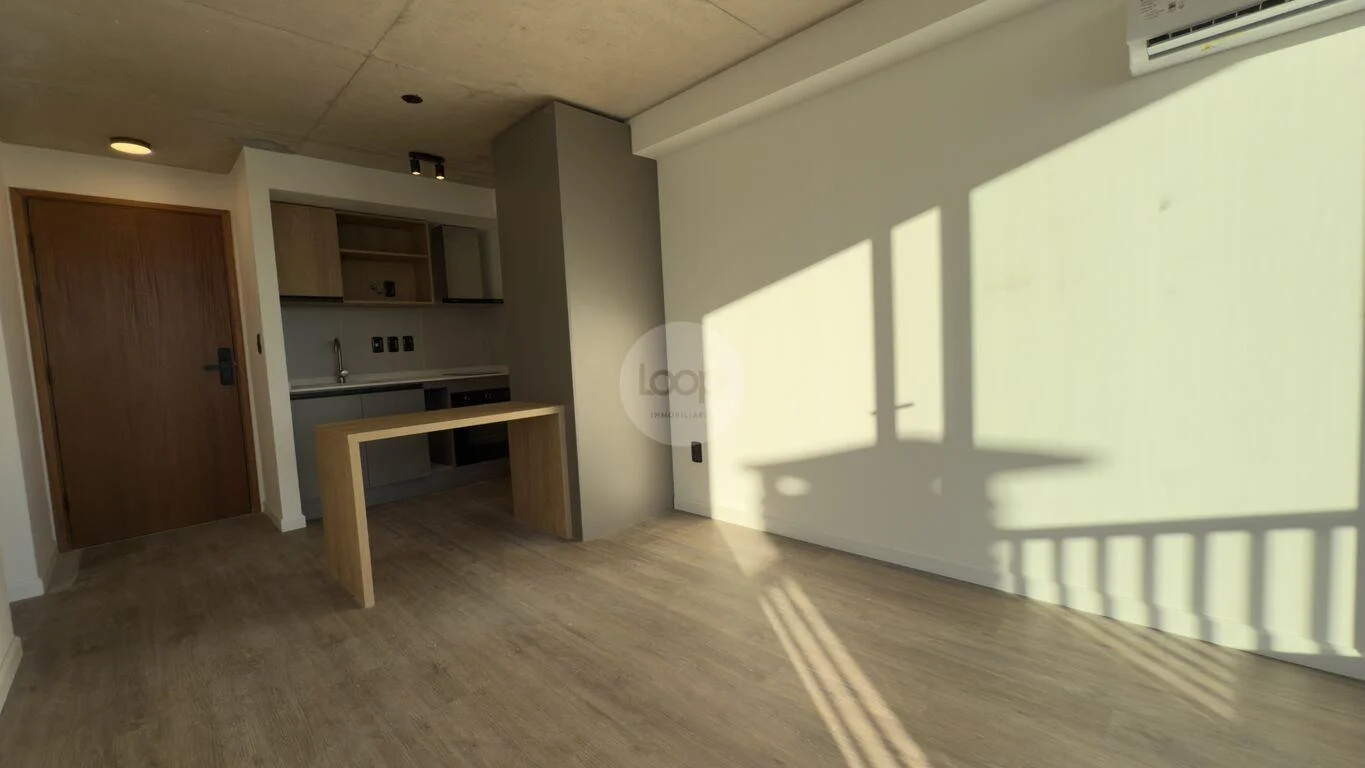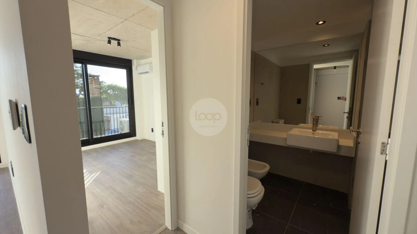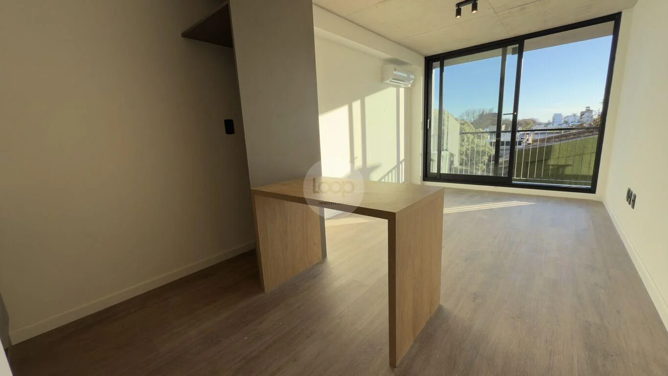 Cuenta con living comedor con cocina semi integrada, con una mesa incorporada dividiendo los ambientes y salida a balcón. Dormitorio cómodo, con placard y también salida a balcón. En la distribución existe un espacio cerrado con conexión para lavarropas y es el espacio previsto también donde va instalado el calefón. Baño completo de calidad, con muy buen gusto.