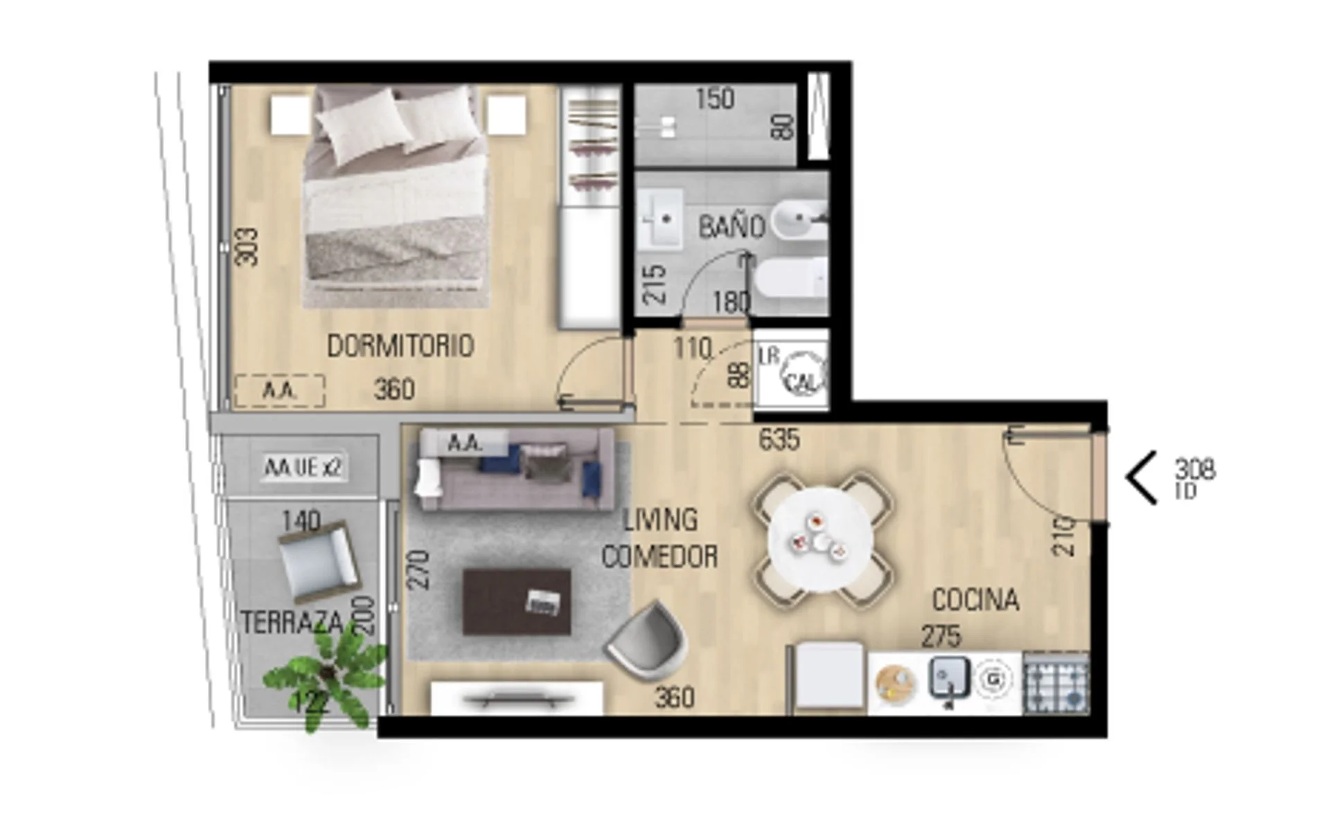 Apartamento unidad 408 en el cuarto piso, de 1 dormitorio con orientación oeste. Pensado para el disfrute y el aprovechamiento de los espacios, cocina integrada con muebles aéreos y bajo mesada. Baño con terminaciones contemporáneas y materiales de primera calidad. Terraza al frente con salida desde el living y previsión de aire acondicionado en living y dormitorio. Aberturas de aluminio, terminación color negro con cortina de enrollar integrada, pavimento vinílico de alta resistencia en listones símil madera.