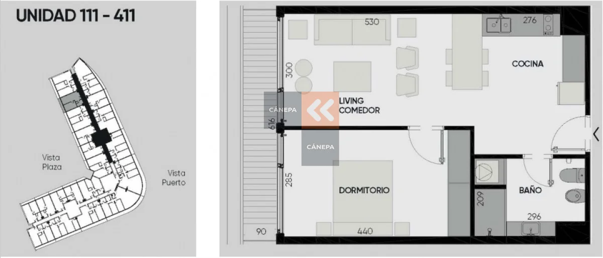 Living comedor Cocina integrada con barra 1 dormitorio 1 baño completo Referencia Interna : Tera-13236