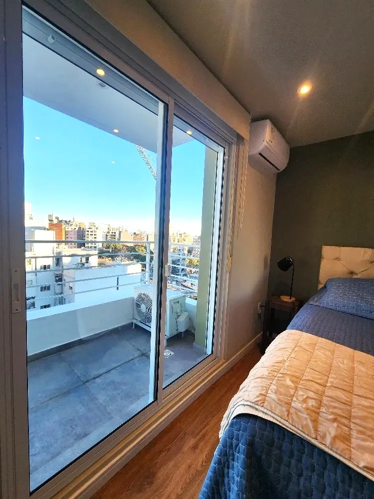 - 1 dormitorio en suite, con placares empotrados y salida a balcón al frente. Cuenta asimismo con equipo de aire acondicionado.