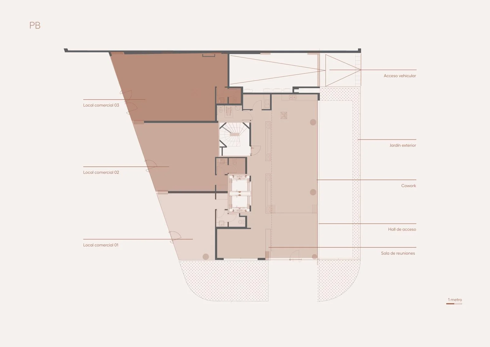 El edificio se desarrolla en 12 niveles, con 2 subsuelos de estacionamiento, locales comerciales en planta baja y espacios pensados para la vida moderna.