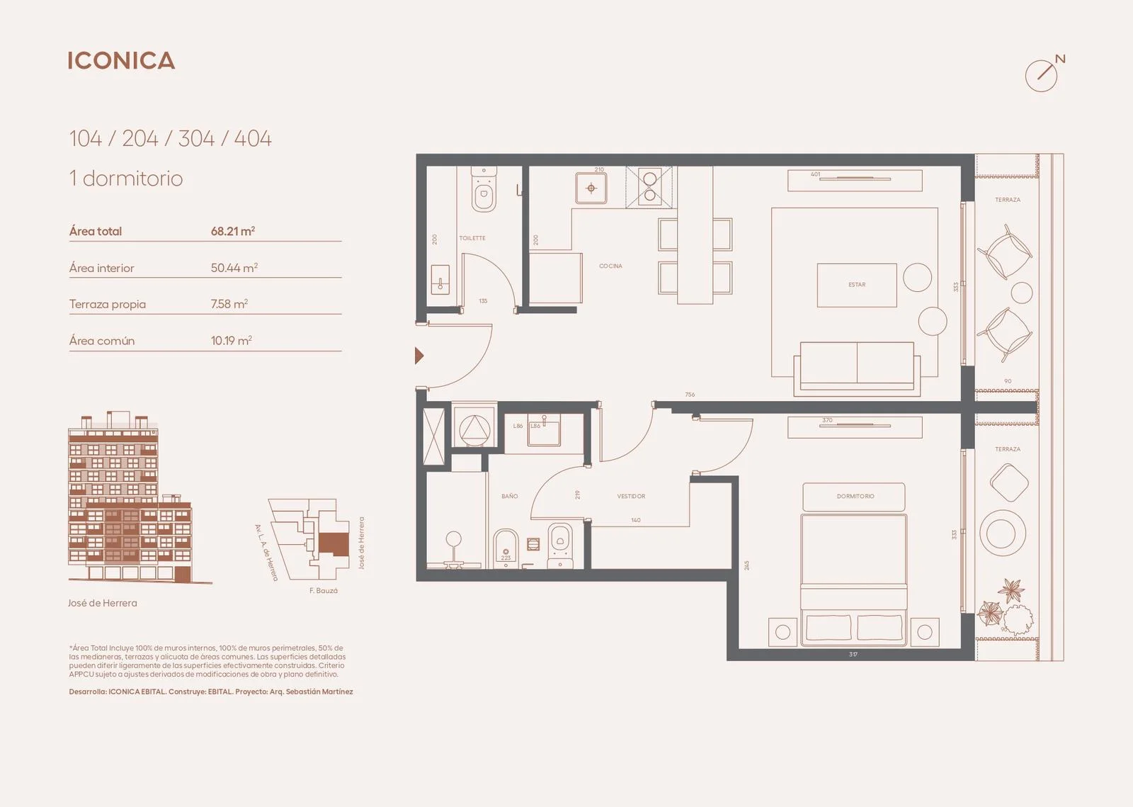 ICONICA es un exclusivo edificio de viviendas donde la comodidad y el estilo de vida urbano se encuentran. Con diseño moderno, estética contemporánea y distribución eficiente de los espacios, ofrece 52 apartamentos que van desde monoambientes hasta unidades de 1 y 2 dormitorios, pensado para quienes buscan confort, practicidad y calidad de vida.