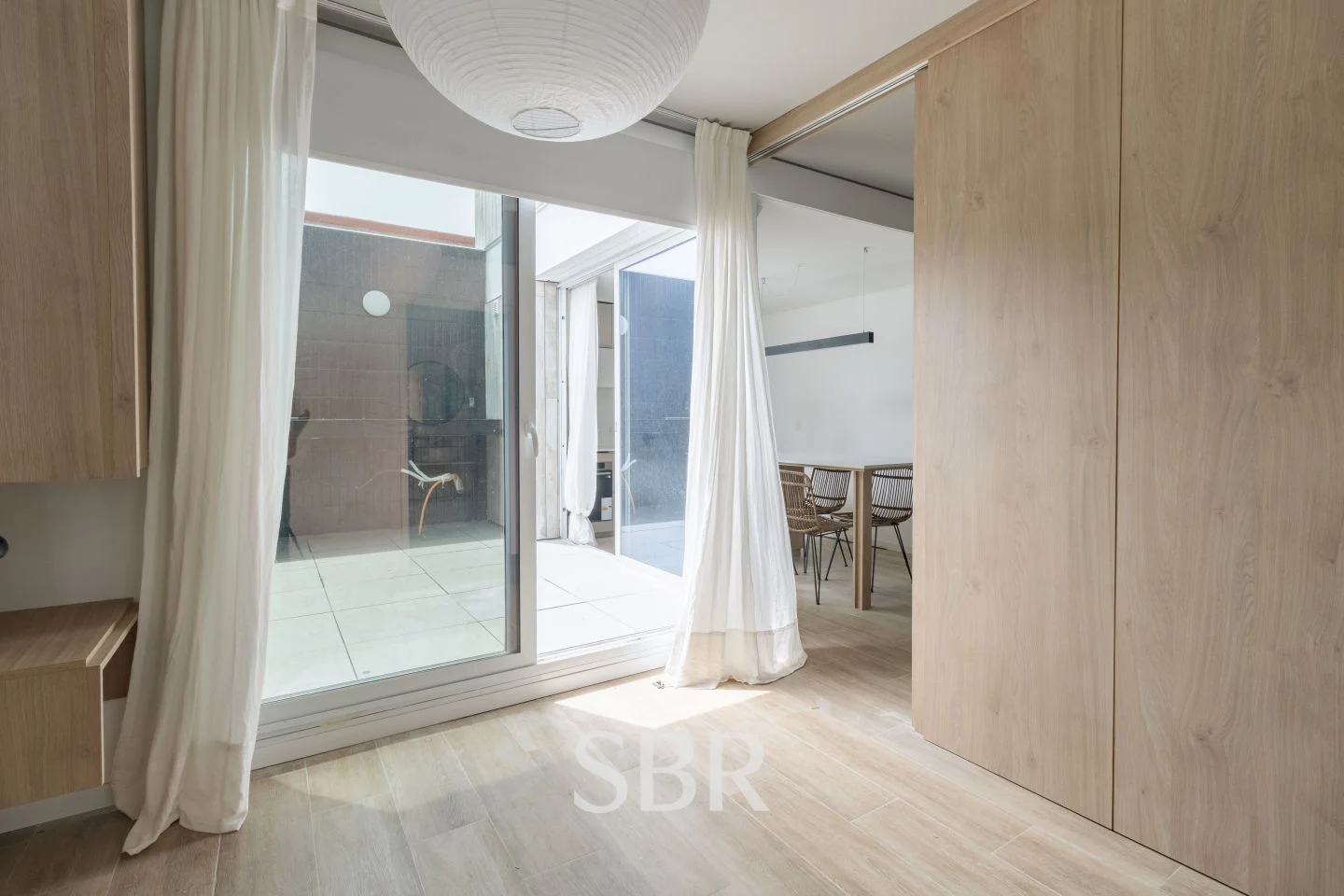 Dormitorio con ventanal al patio