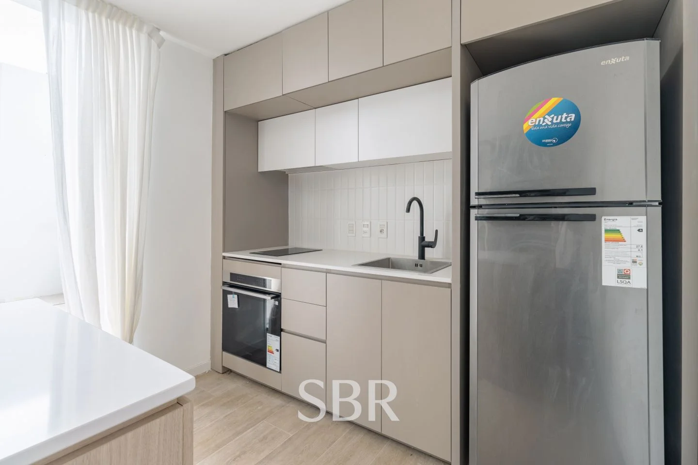 El apartamento cuenta con aberturas en aluminio, muebles bajo mesada y alacena, anafe, previsión para horno, aire y lavarropa, sector de servicios, boxes opcionales y área de laundry.