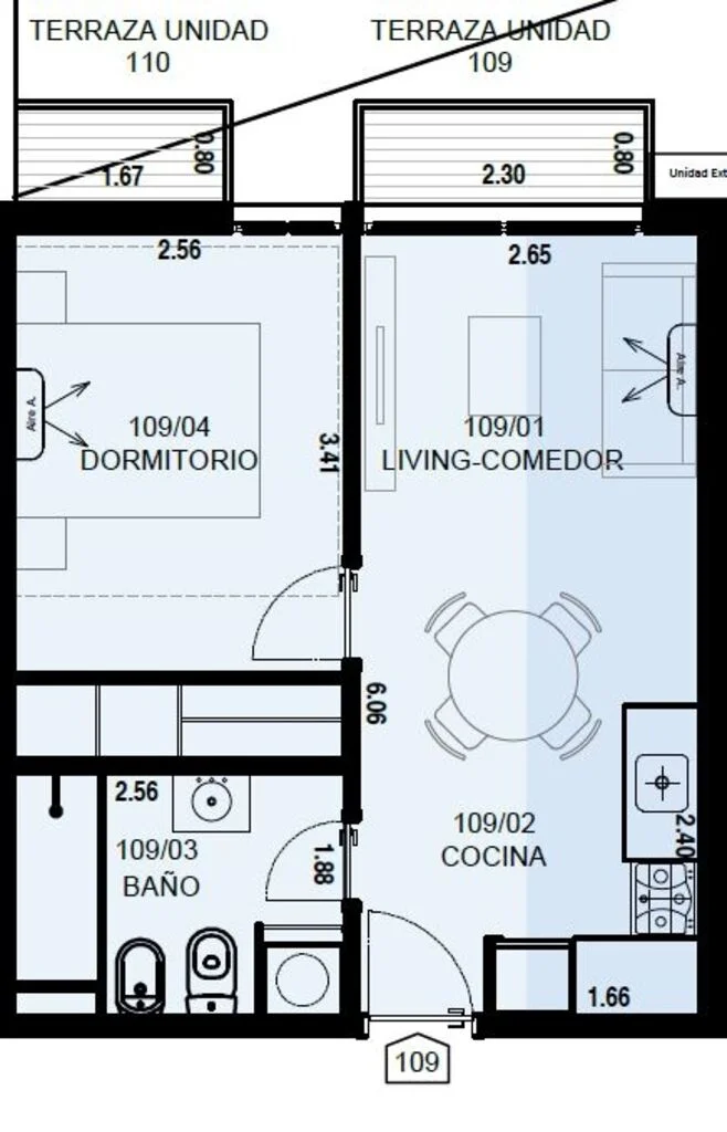 Cuenta con Living comedor con salida a terraza
