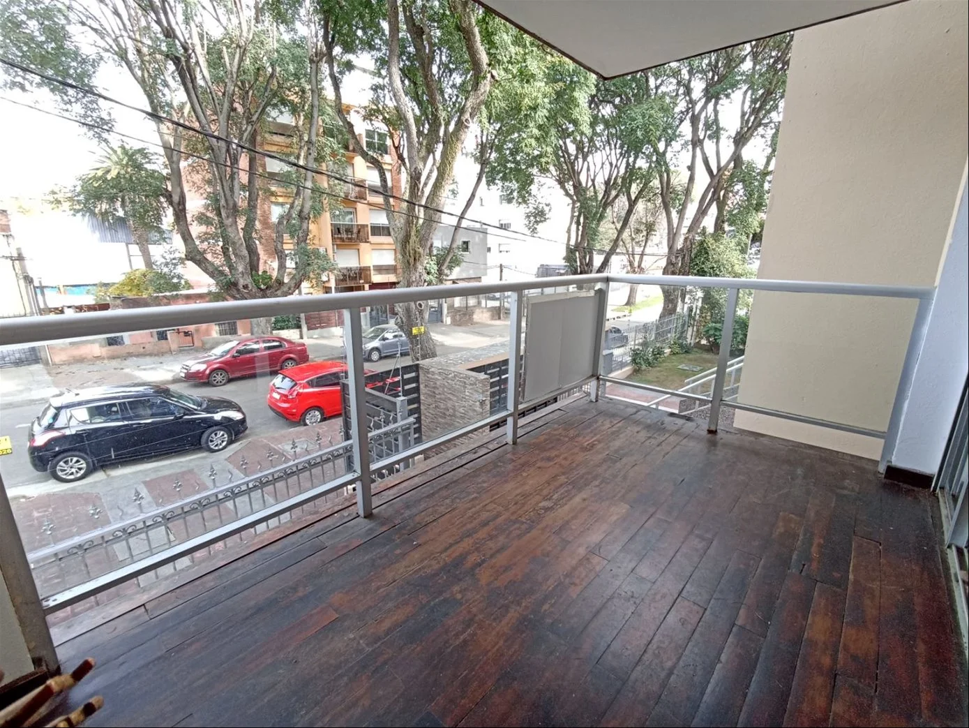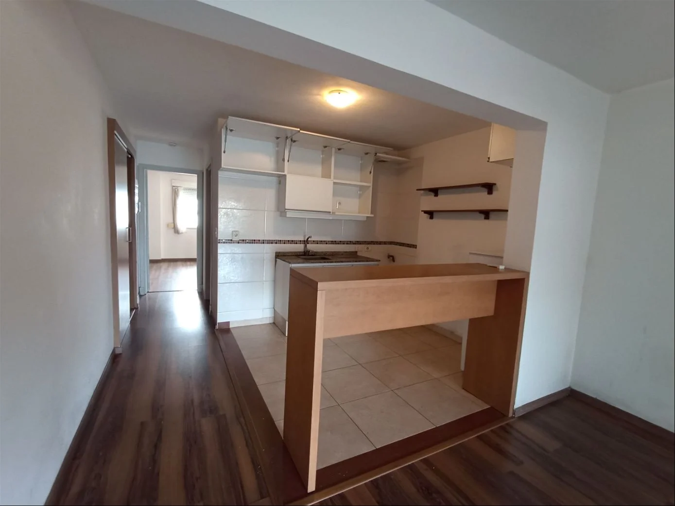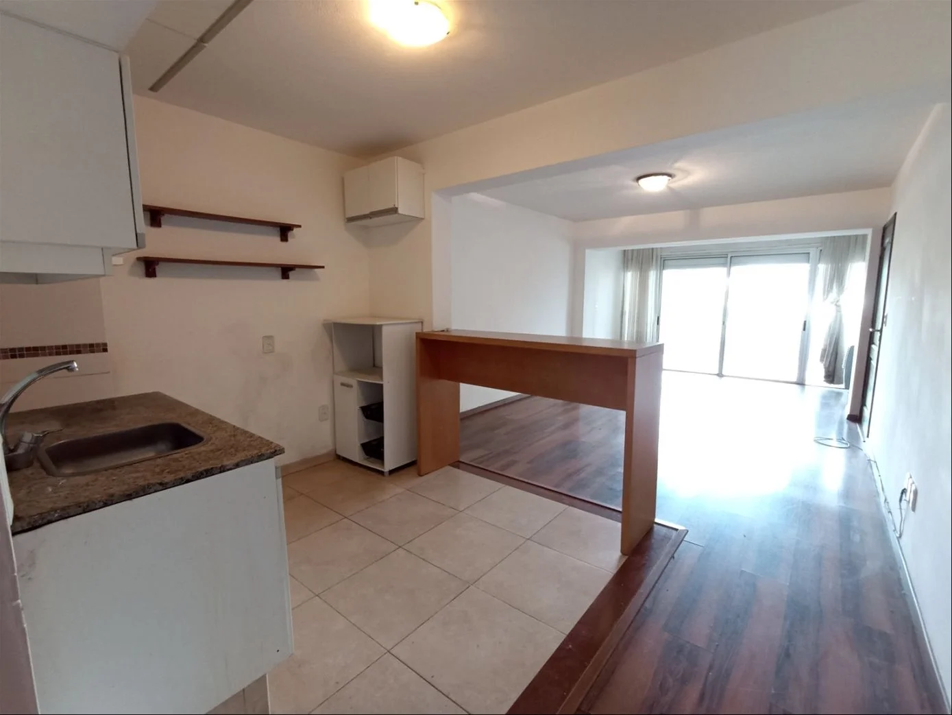 Amplio living comedor con salida a gran terraza al frente, cocina integrada separada por barra, alacena con lugar para lavarropas, baño completo con mampara, dormitorio con placard de pared a pared, Aire Acondicionado en dormitorio y radiador a gas en living comedor.