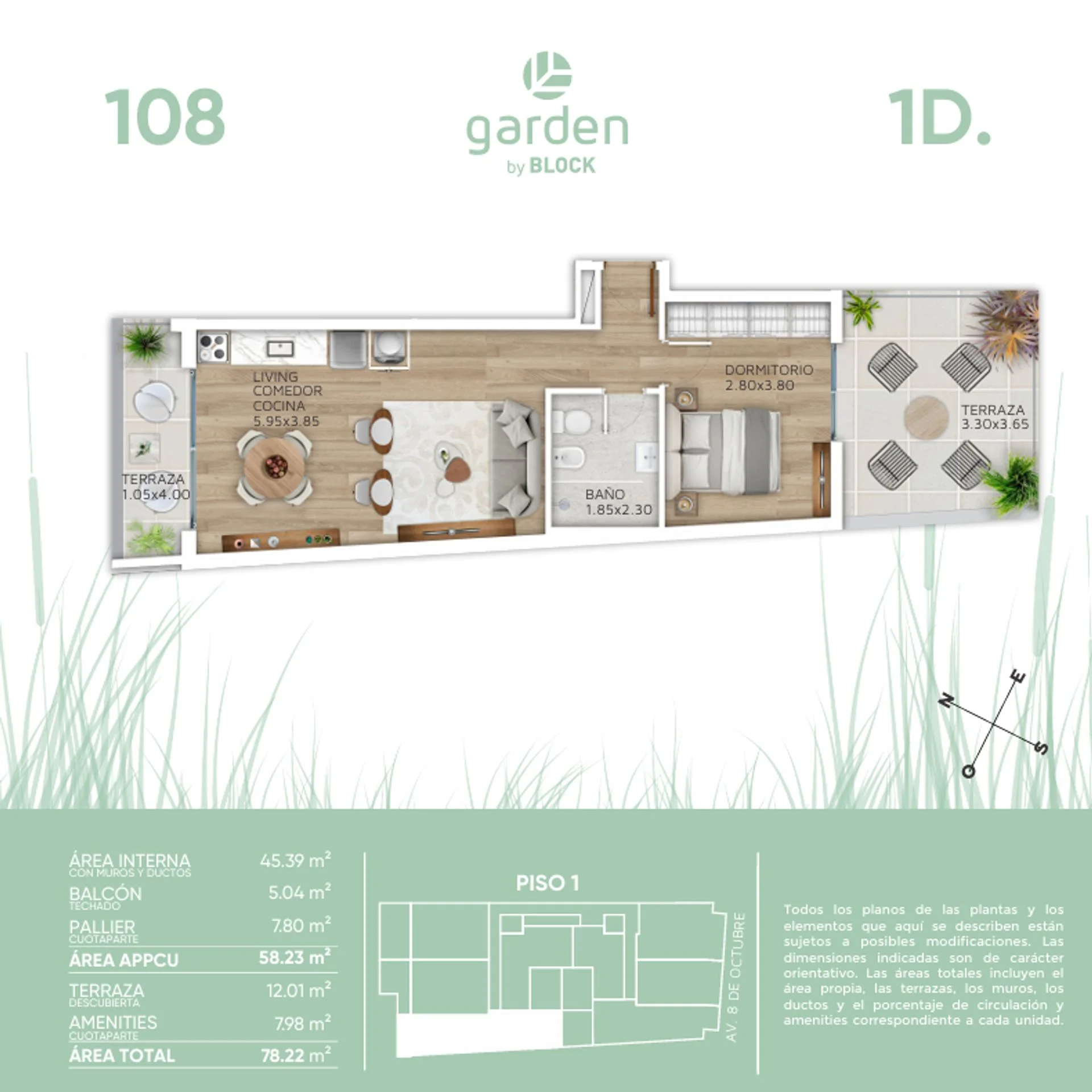 La presente publicación describe las características esenciales del inmueble, debiéndose consultar al responsable de la operación por la eventual actualización de las medidas, descripciones arquitectónicas y funcionales, servicios, impuestos, precios y demás información, cuyos valores son aproximados.