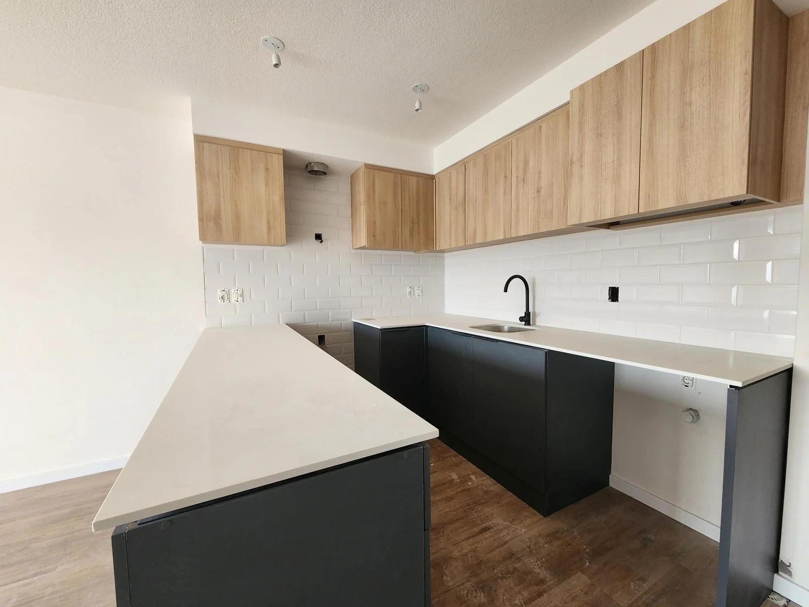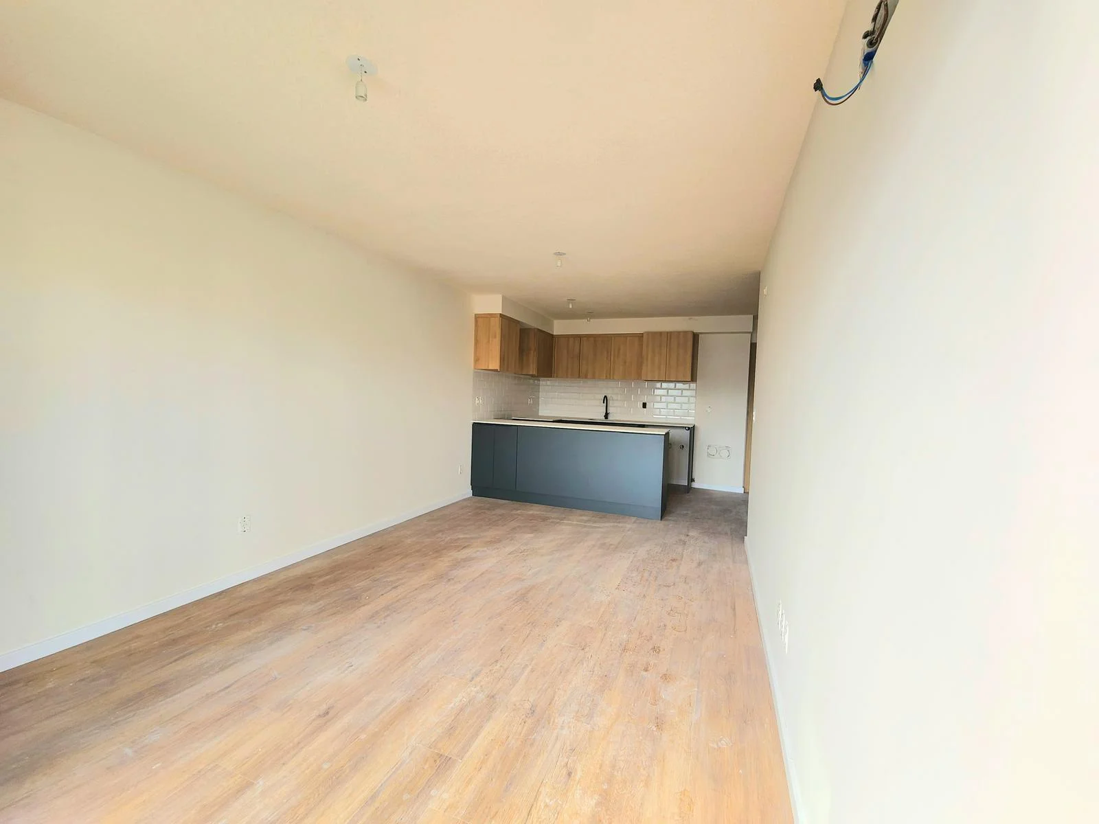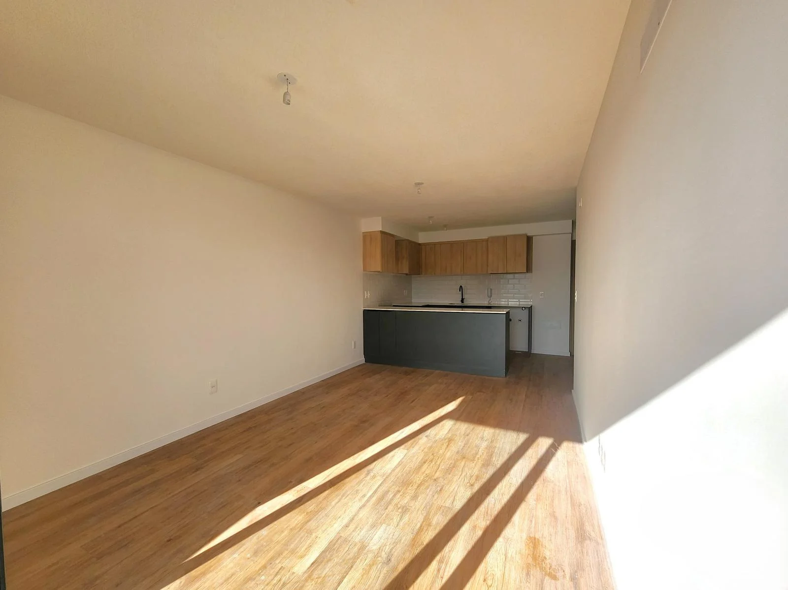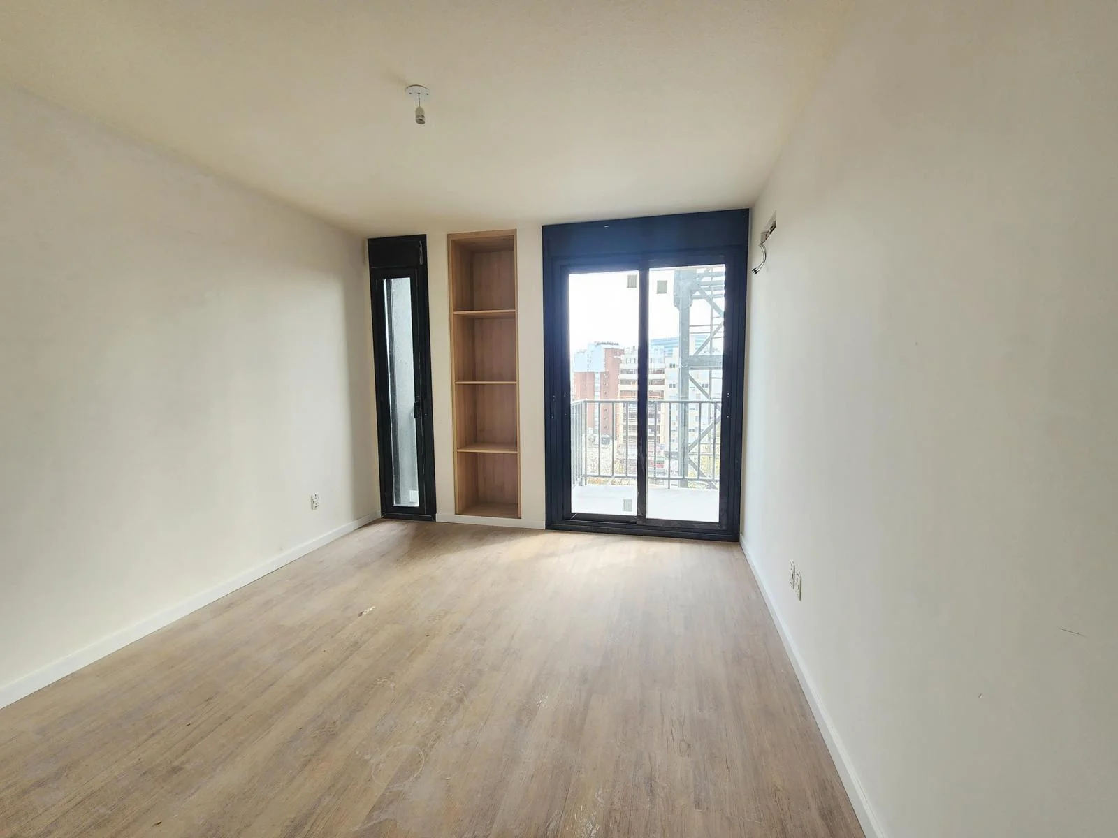 Apartamento Living comedor con 3 estanterías empotradas, cocina integrada con mueble bajo mesada y aéreos. Acceso a terraza de uso exclusivo, un dormitorio con placard. Baño completo.