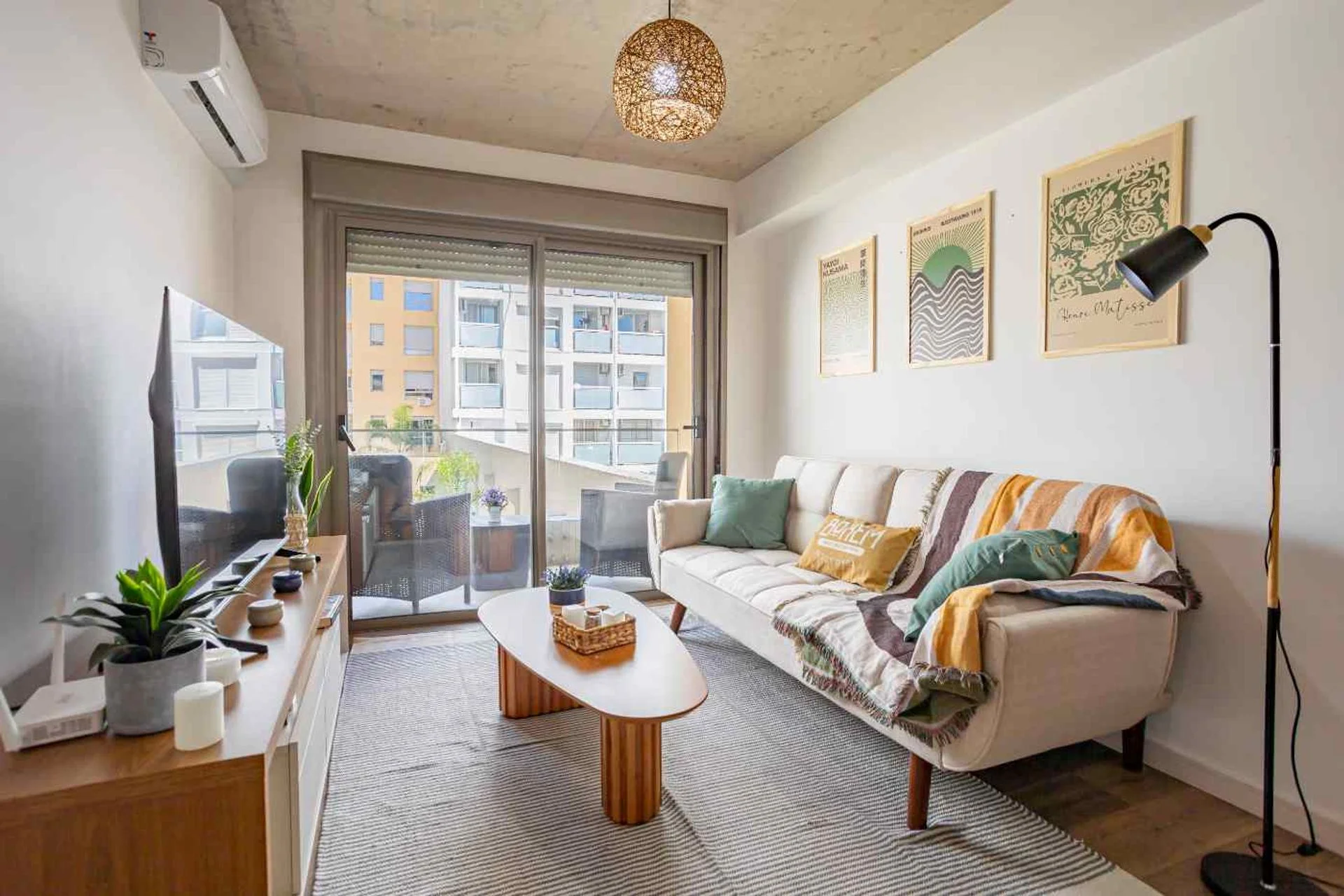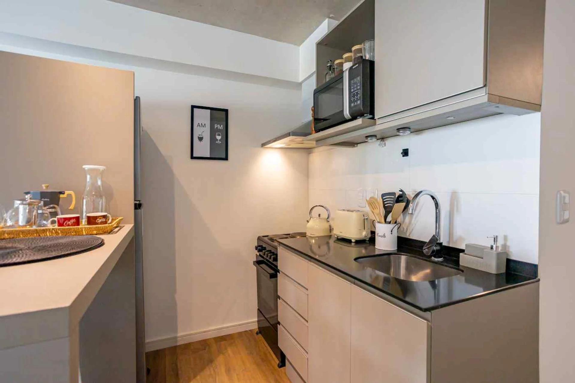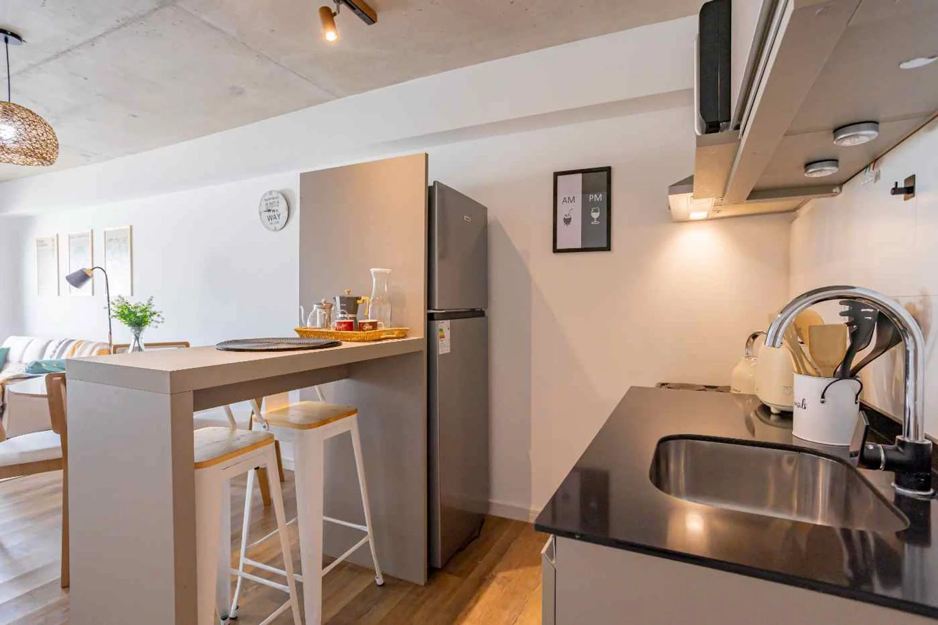 - Living comedor con cocina semi integrada y aire acondicionado.